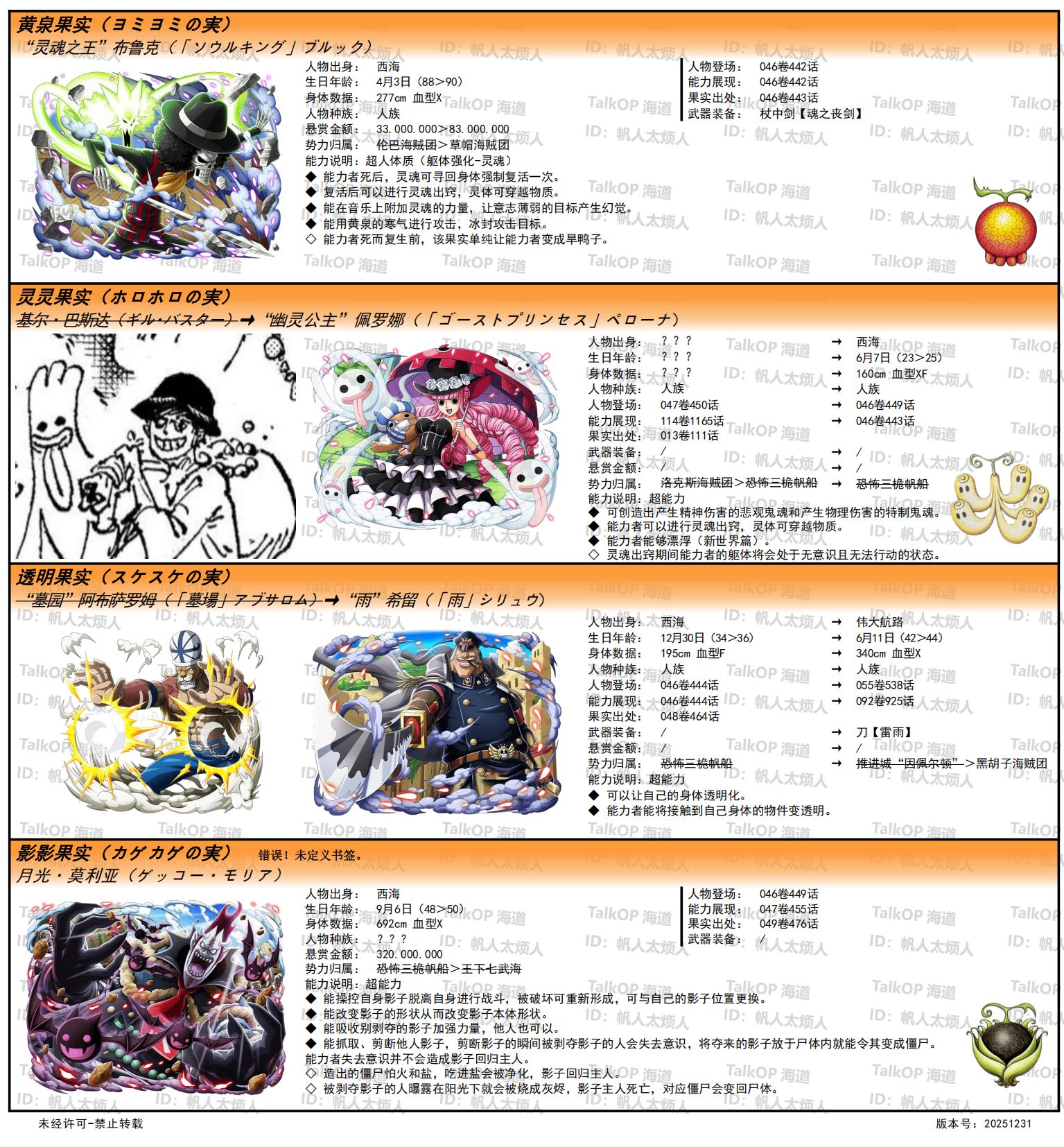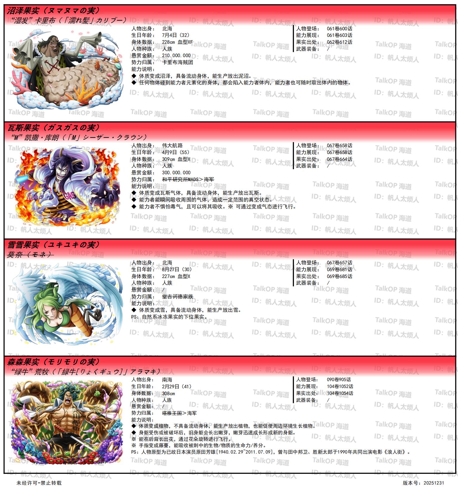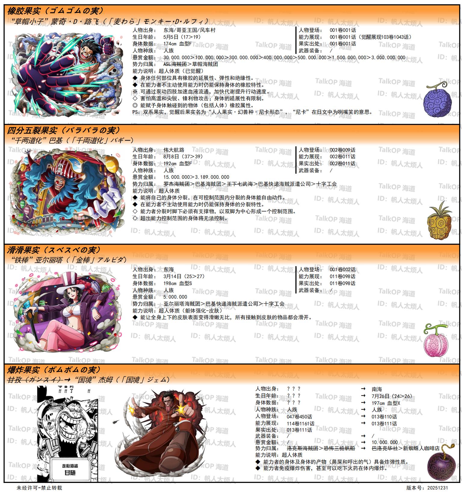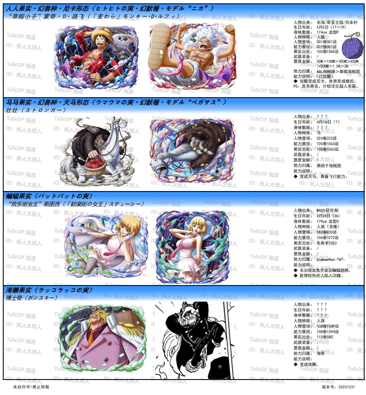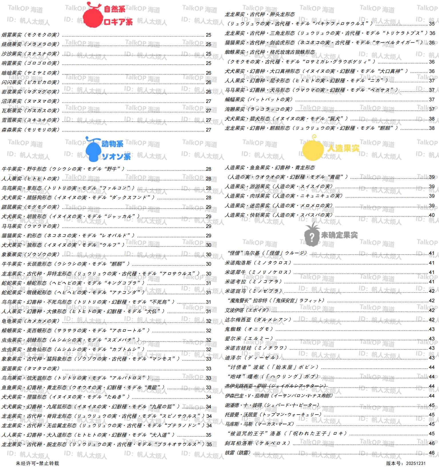 [资料整理] 【帆人杂谈】《海贼王恶魔果实能力者图鉴》(20251231更新) |