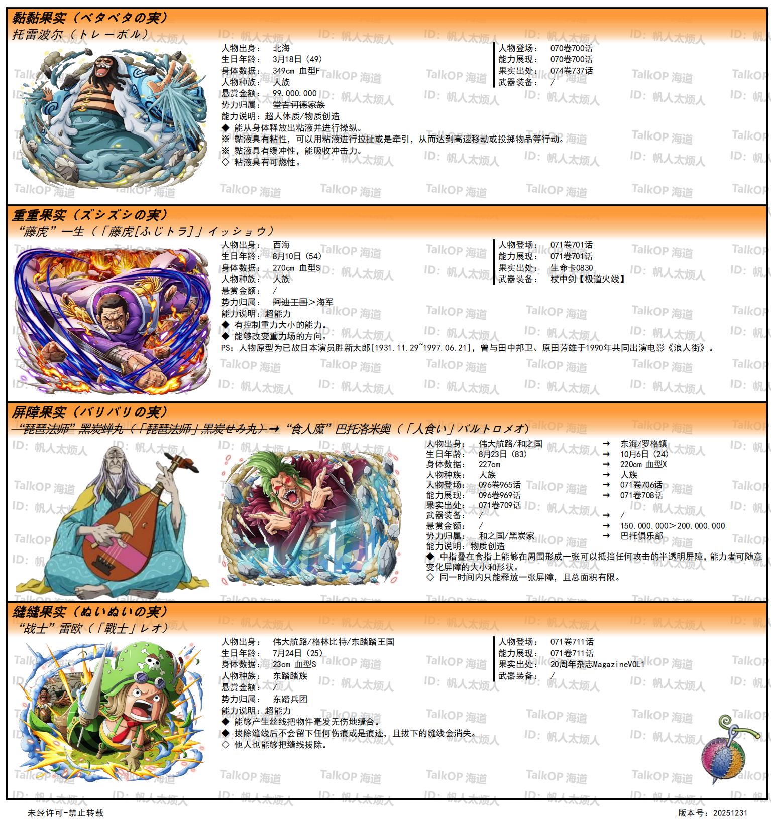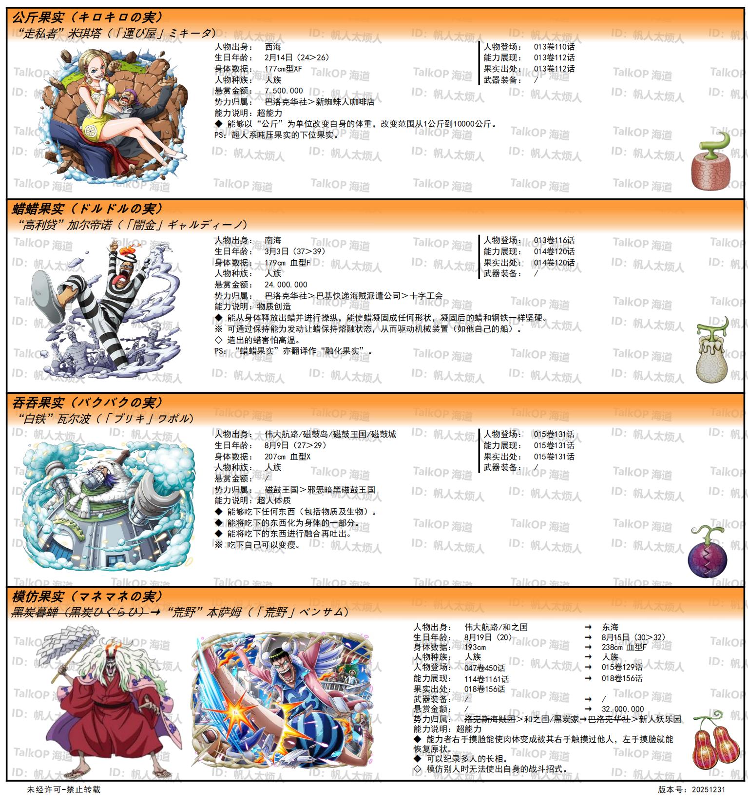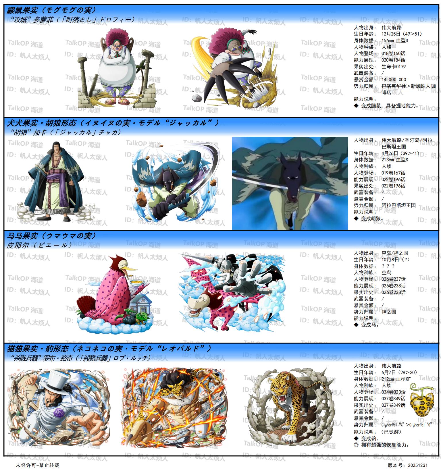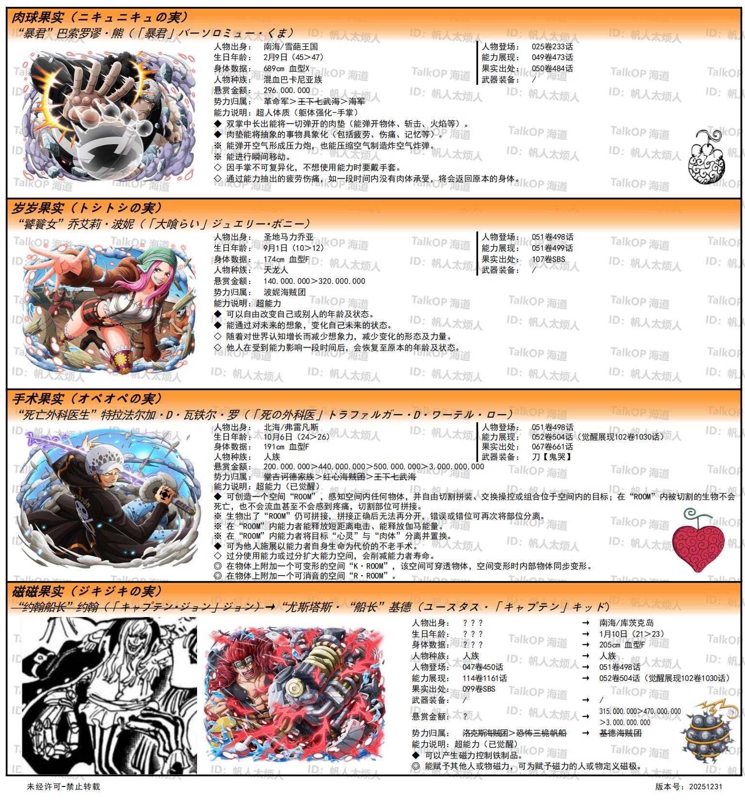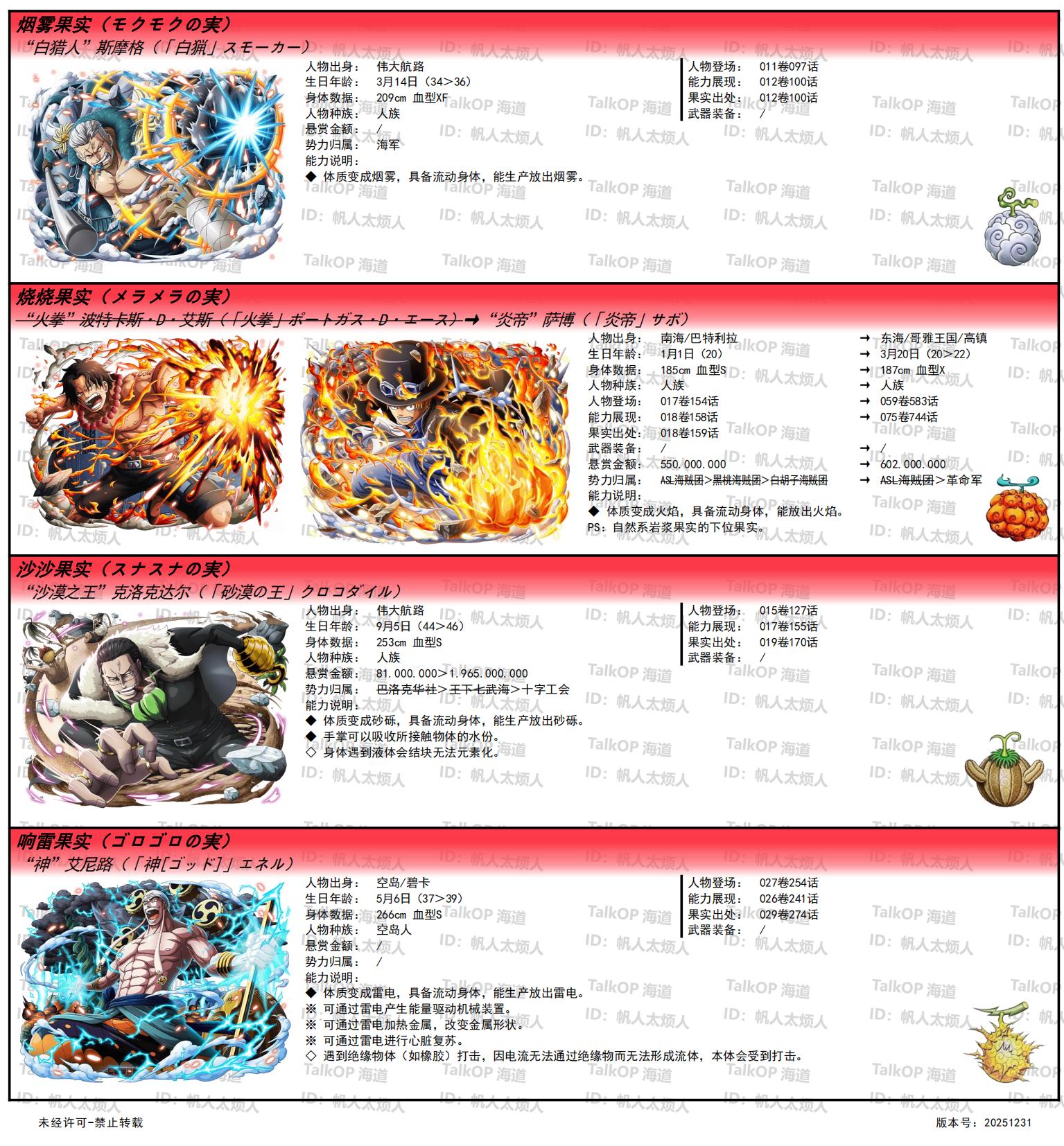 [资料整理] 【帆人杂谈】《海贼王恶魔果实能力者图鉴》(20251231更新) |