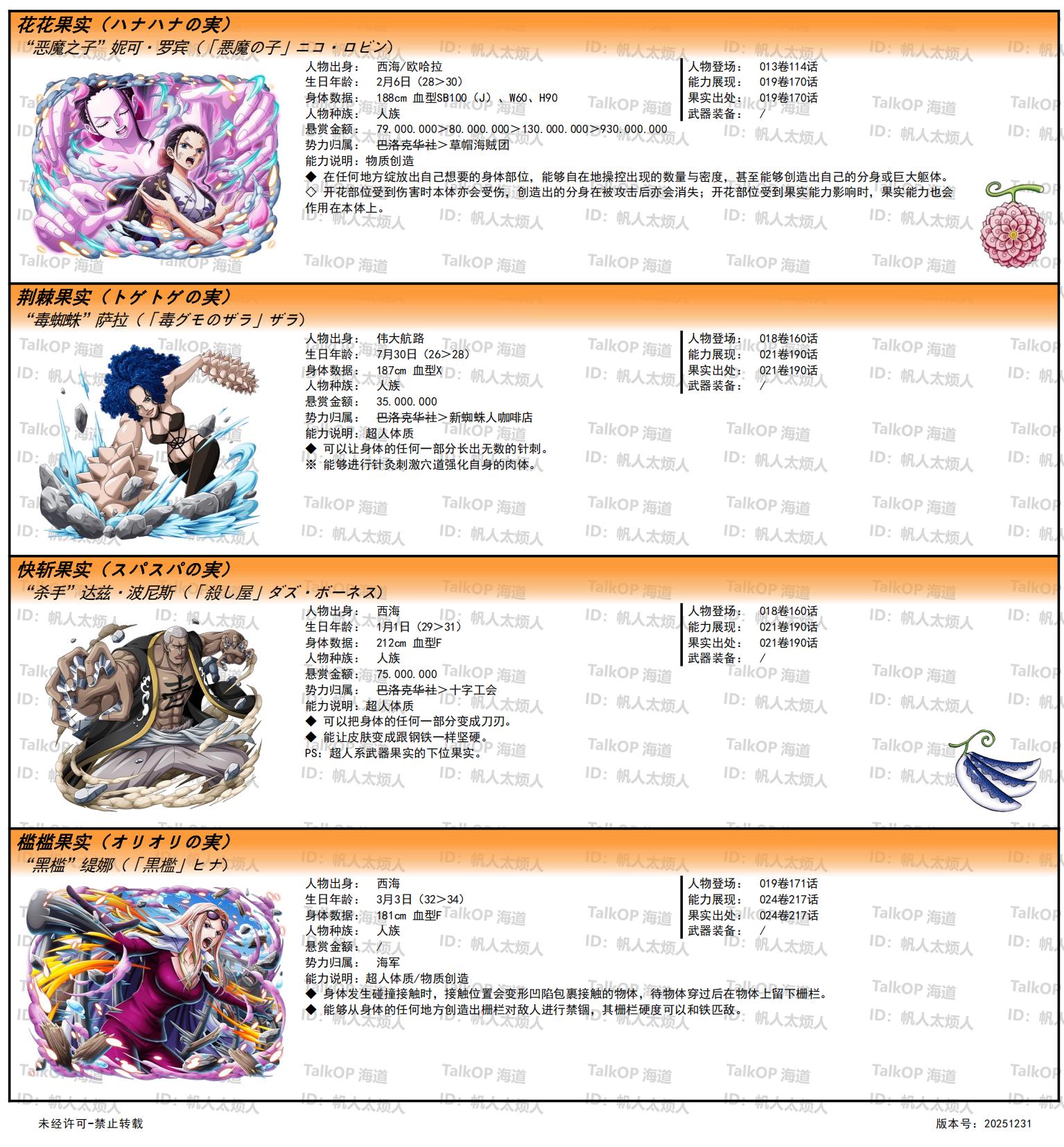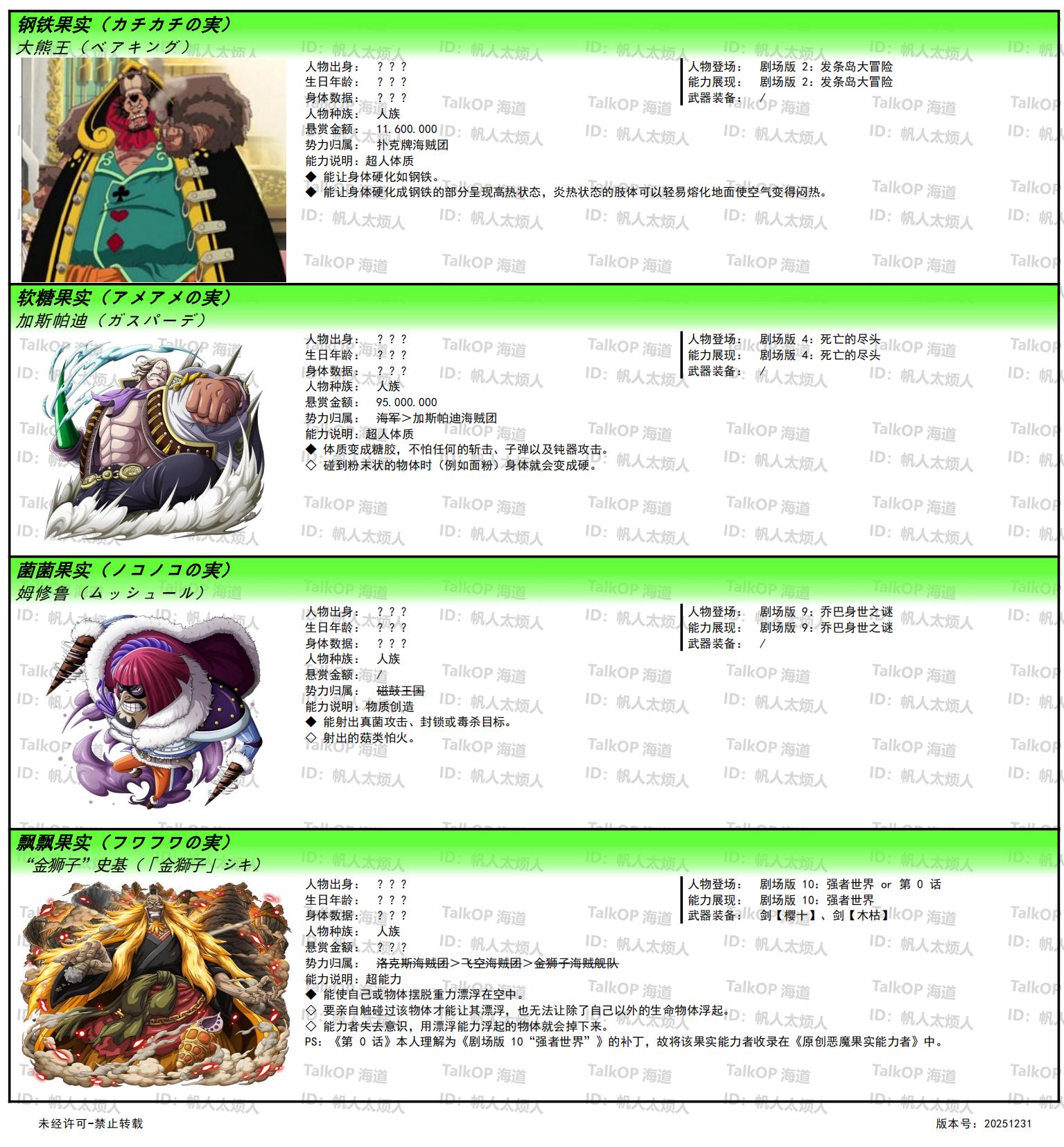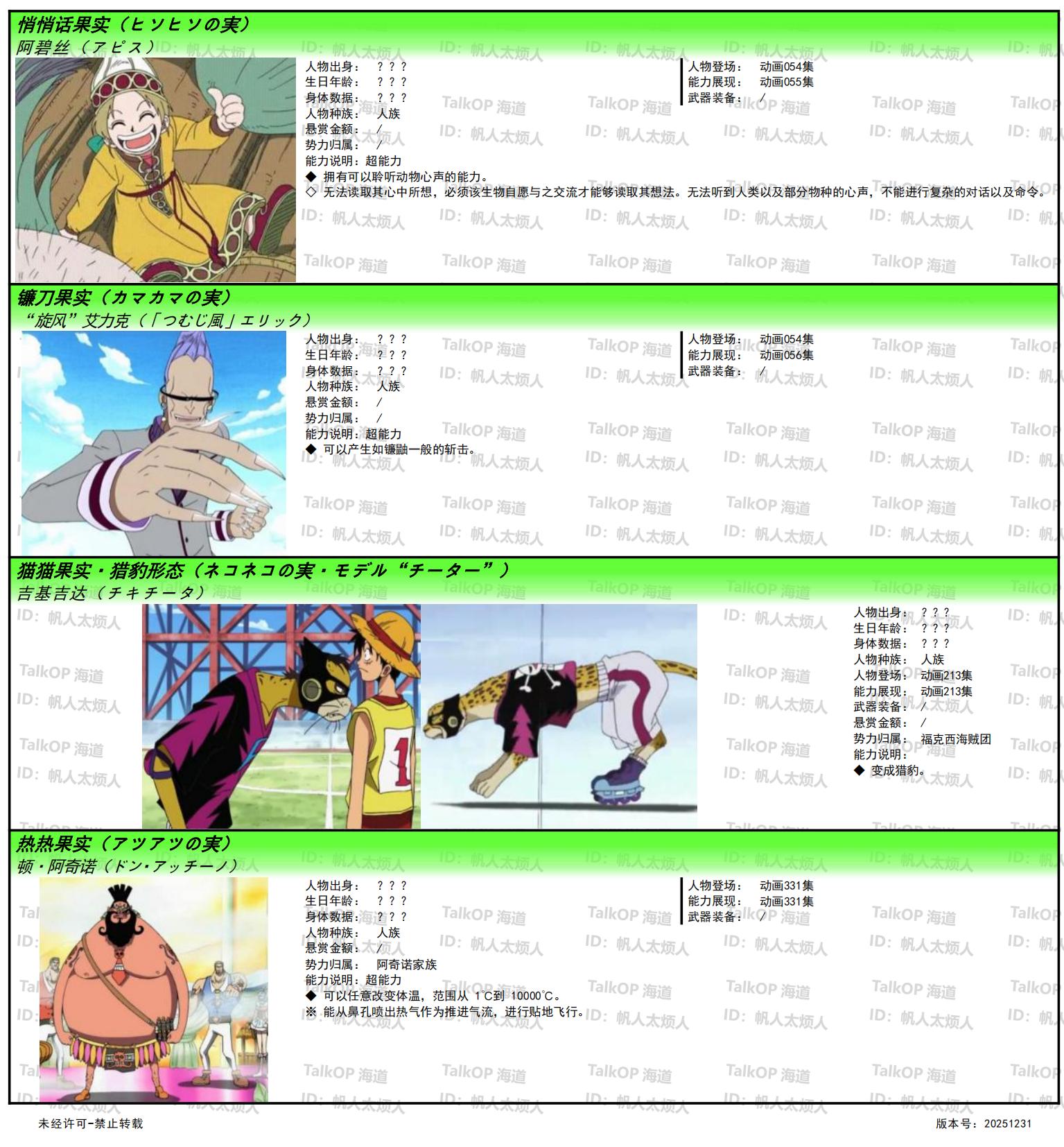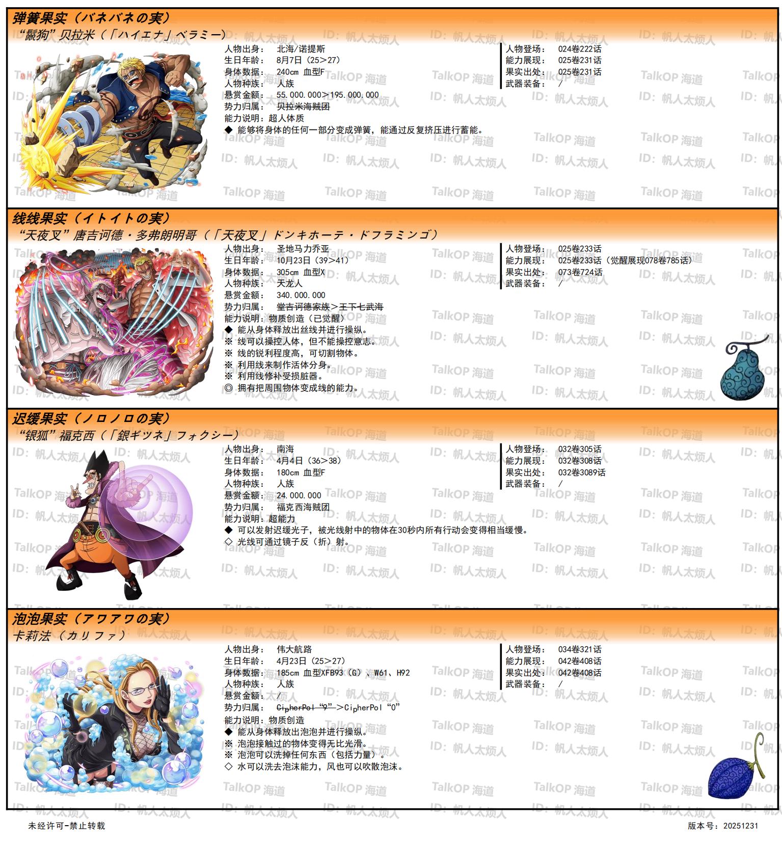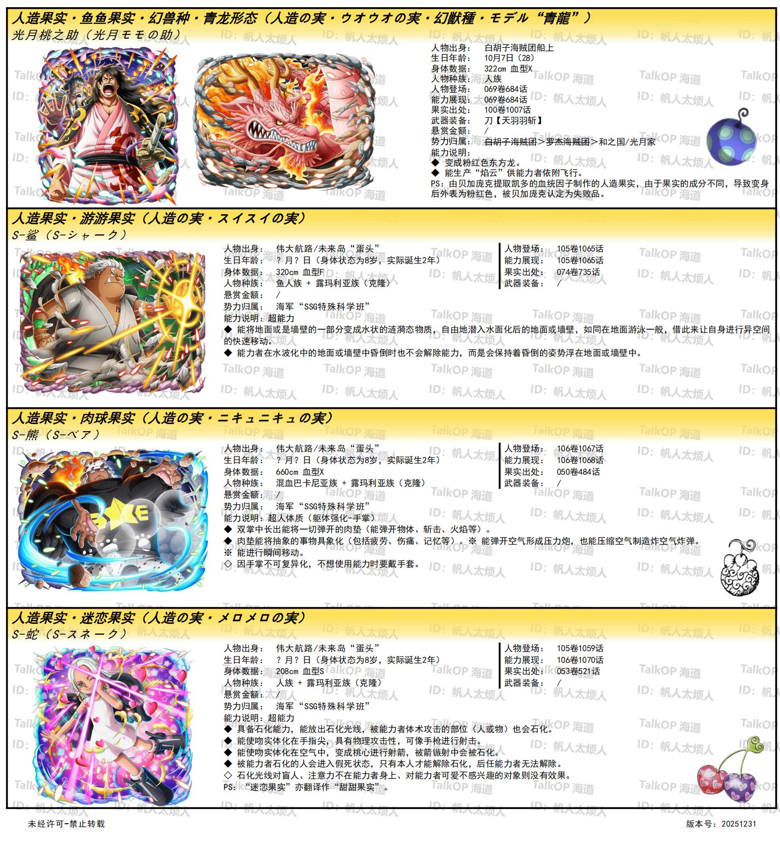 [资料整理] 【帆人杂谈】《海贼王恶魔果实能力者图鉴》(20251231更新) |