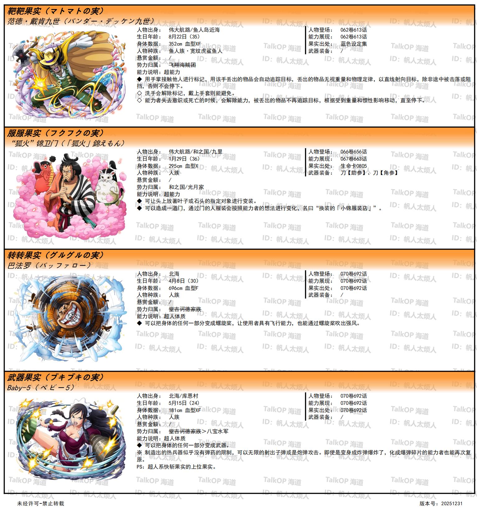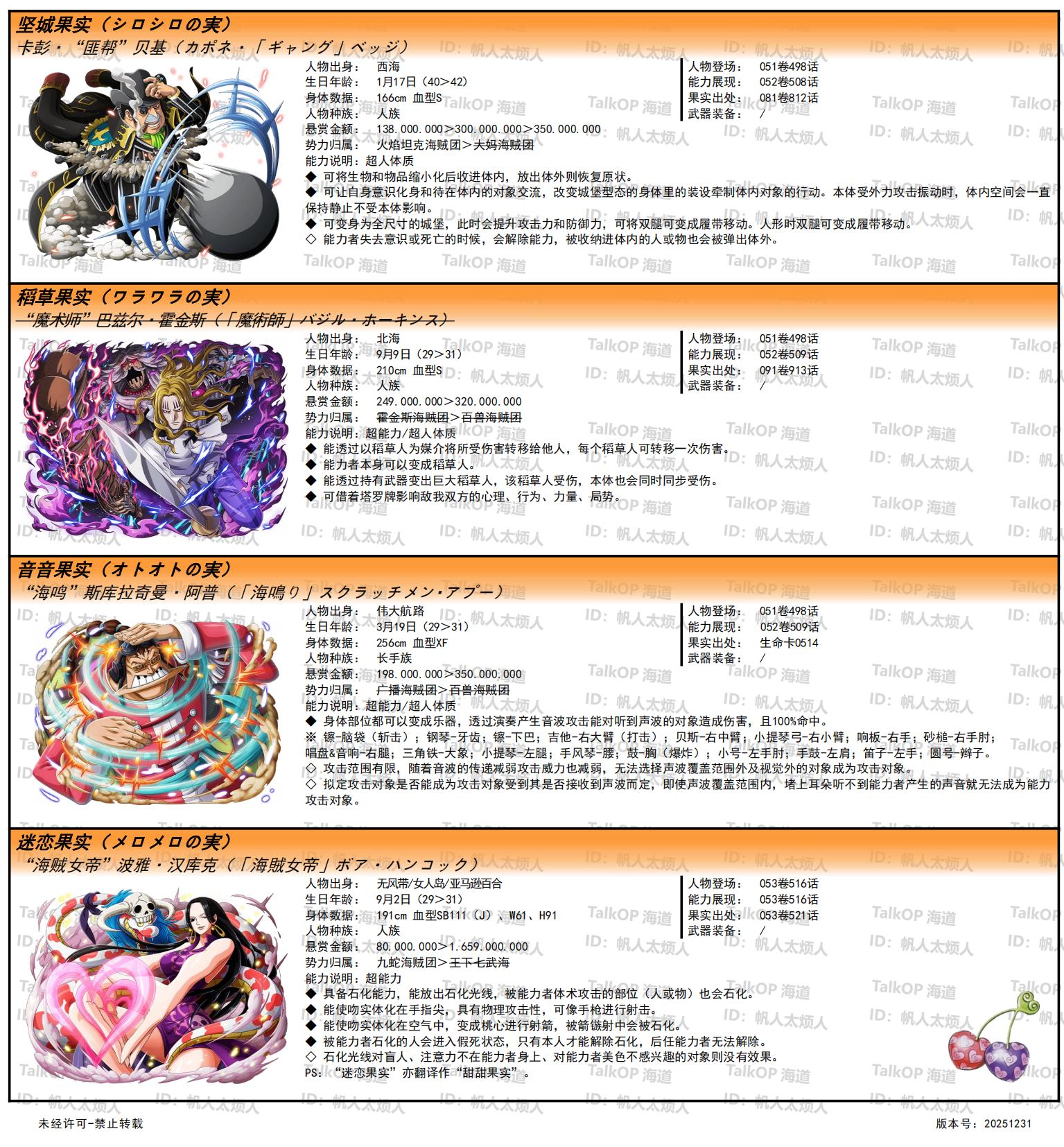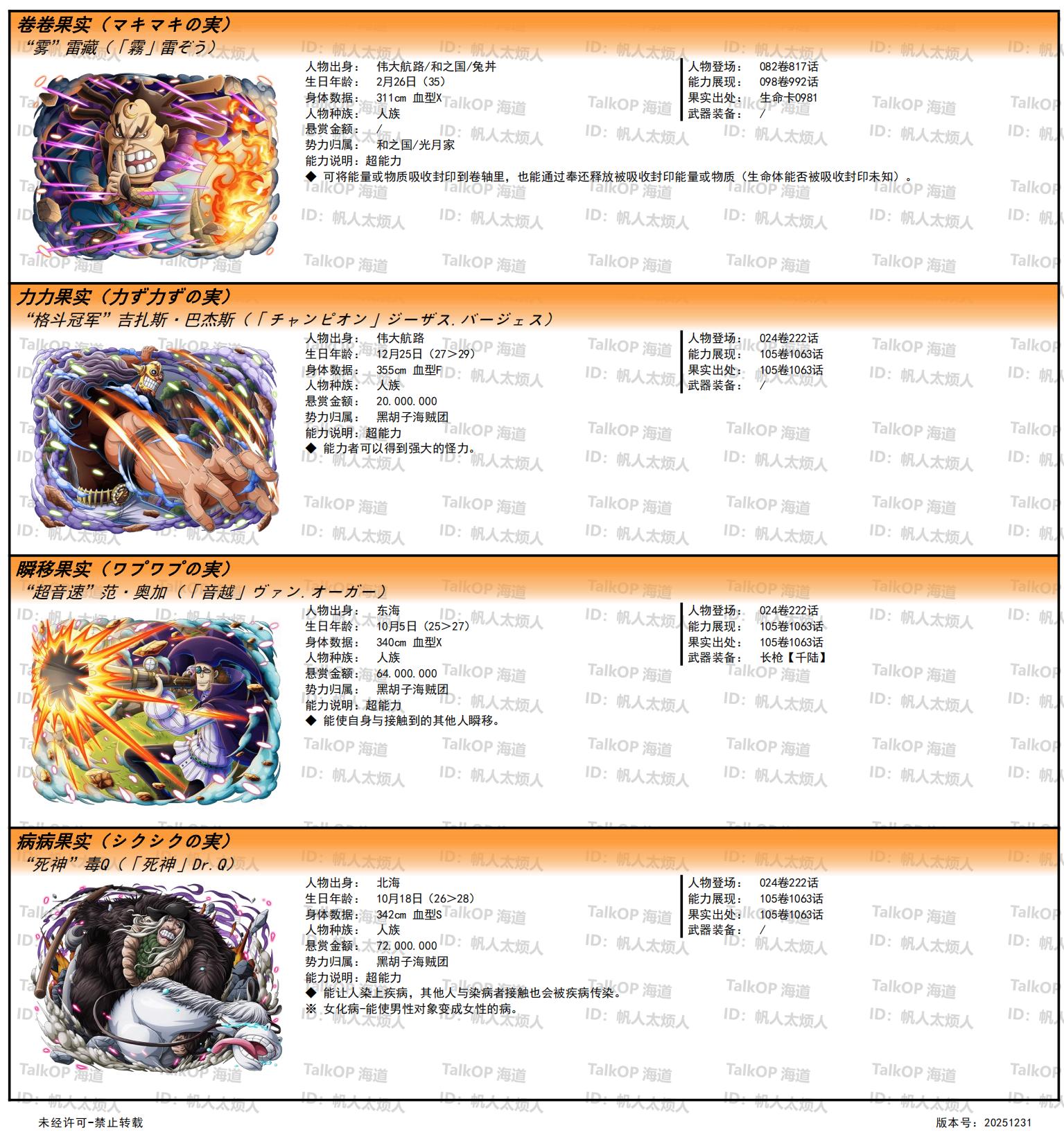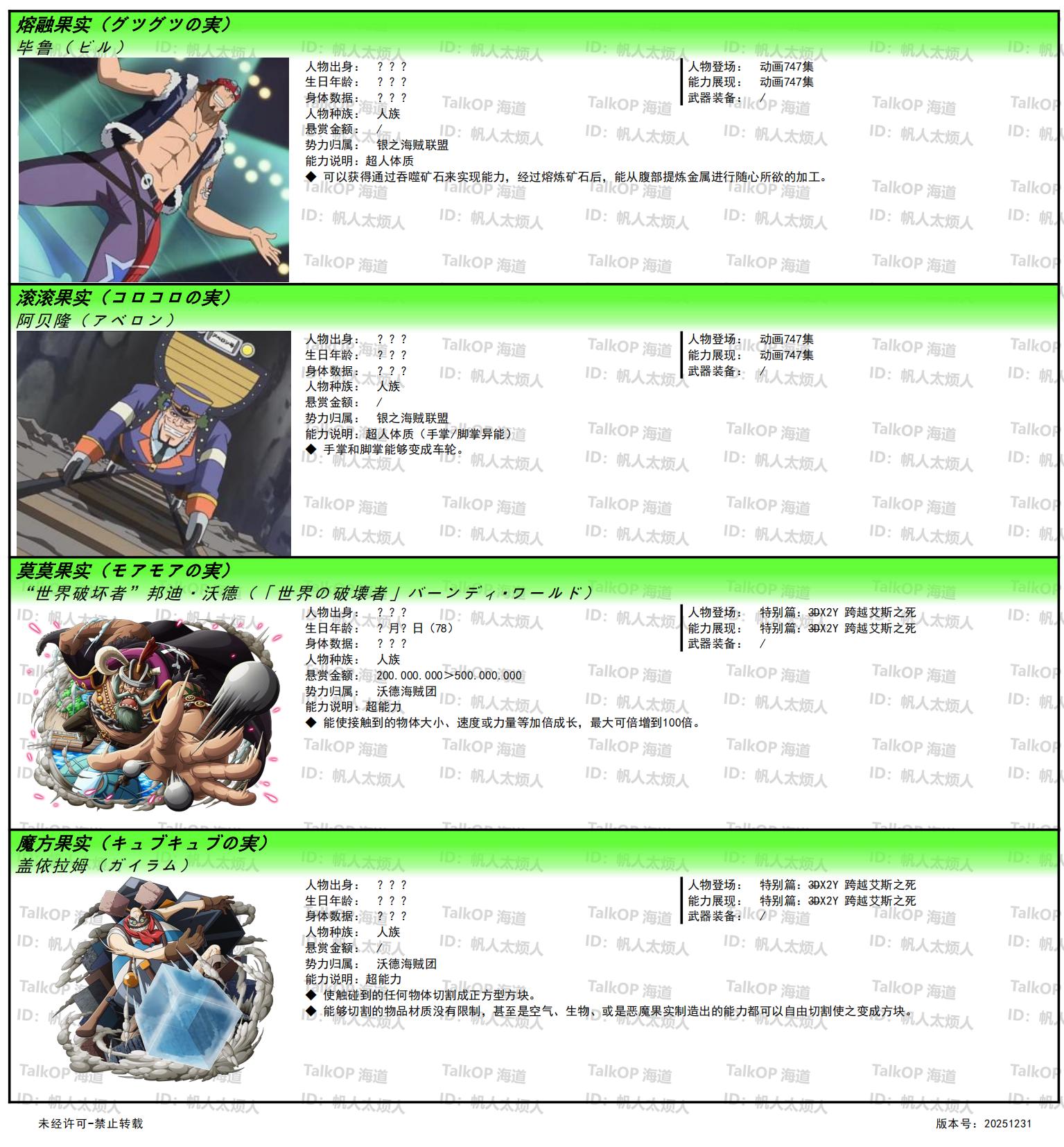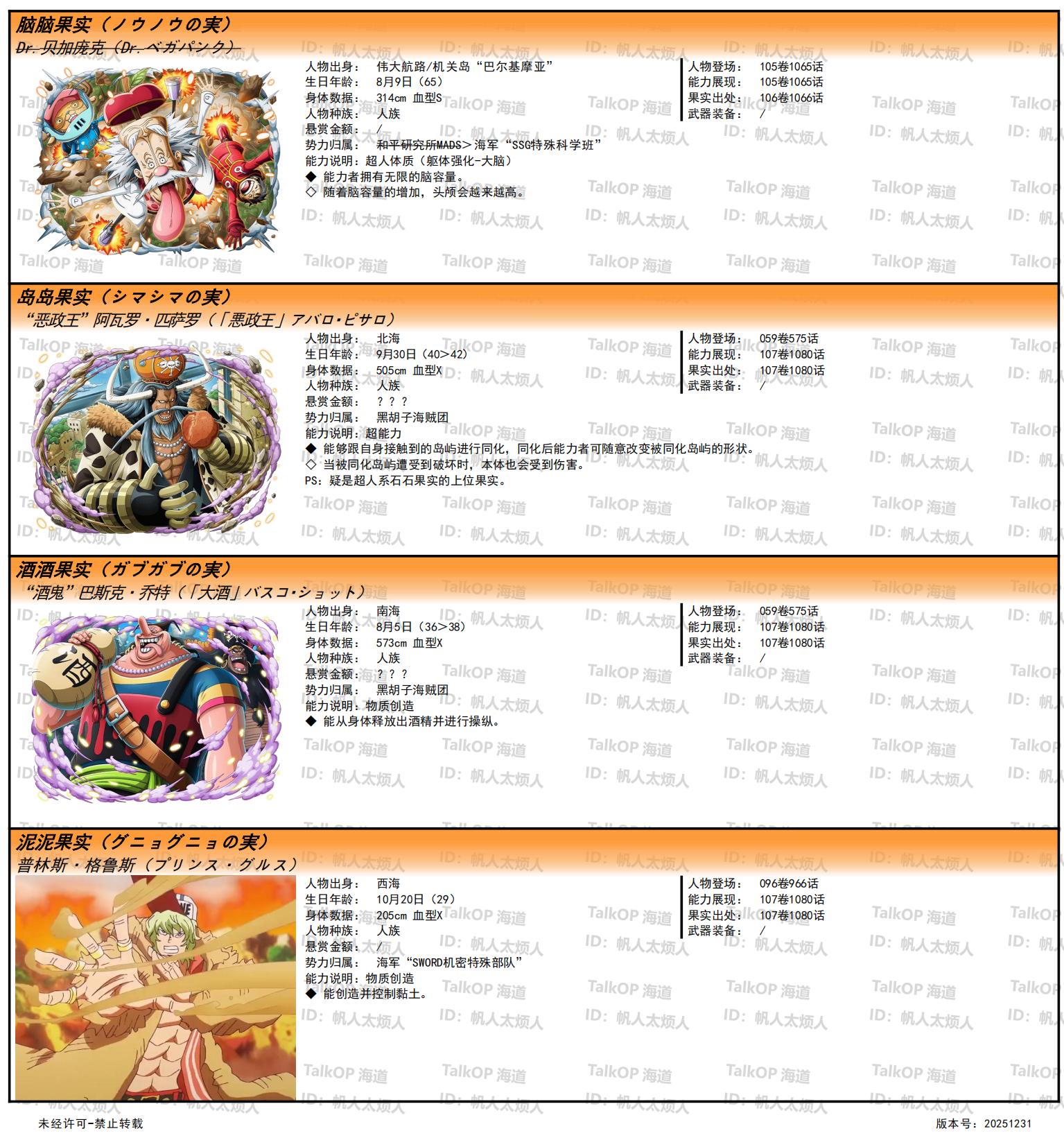 [资料整理] 【帆人杂谈】《海贼王恶魔果实能力者图鉴》(20251231更新) |