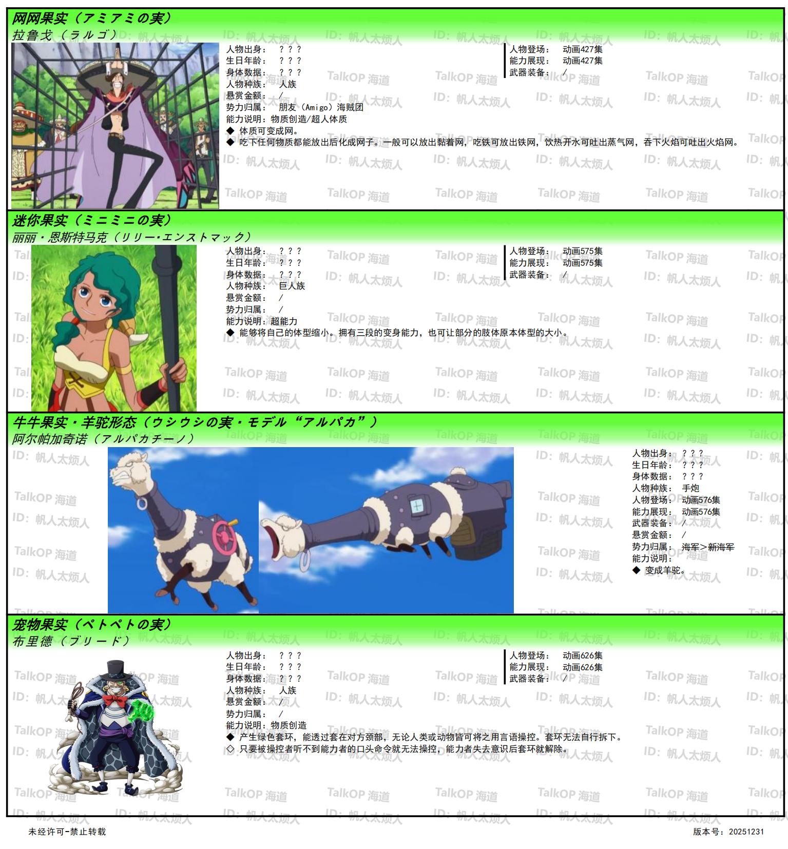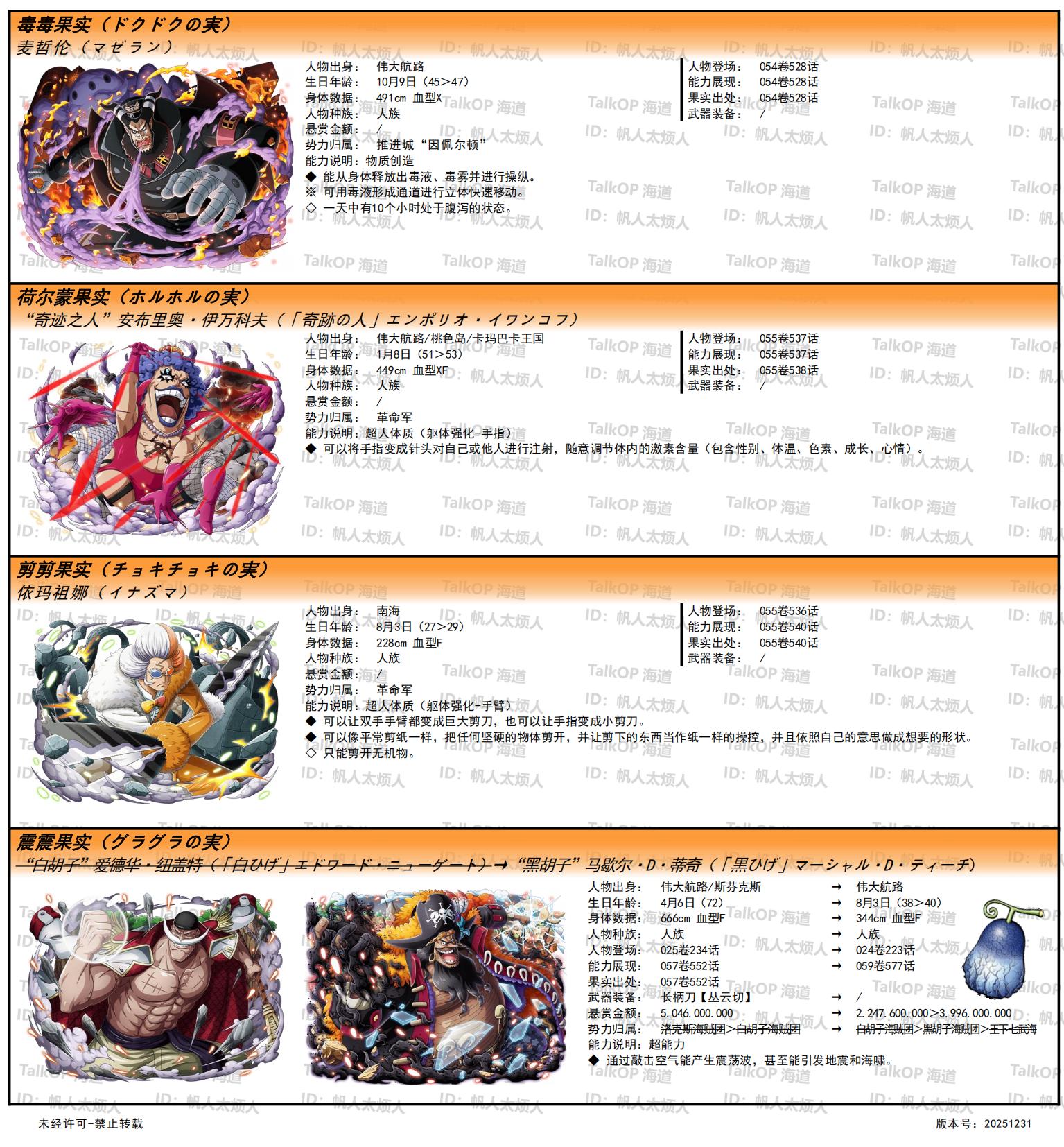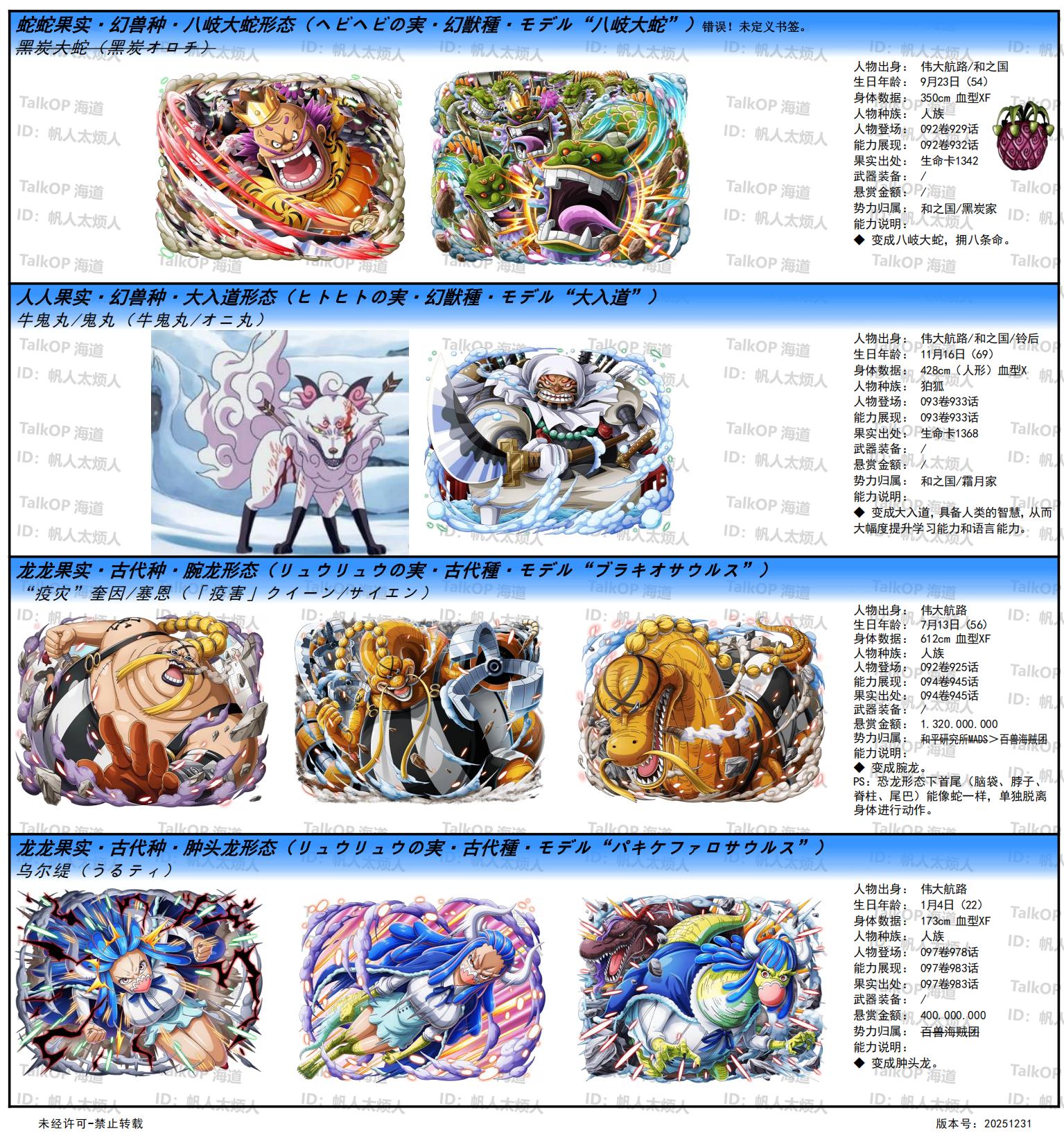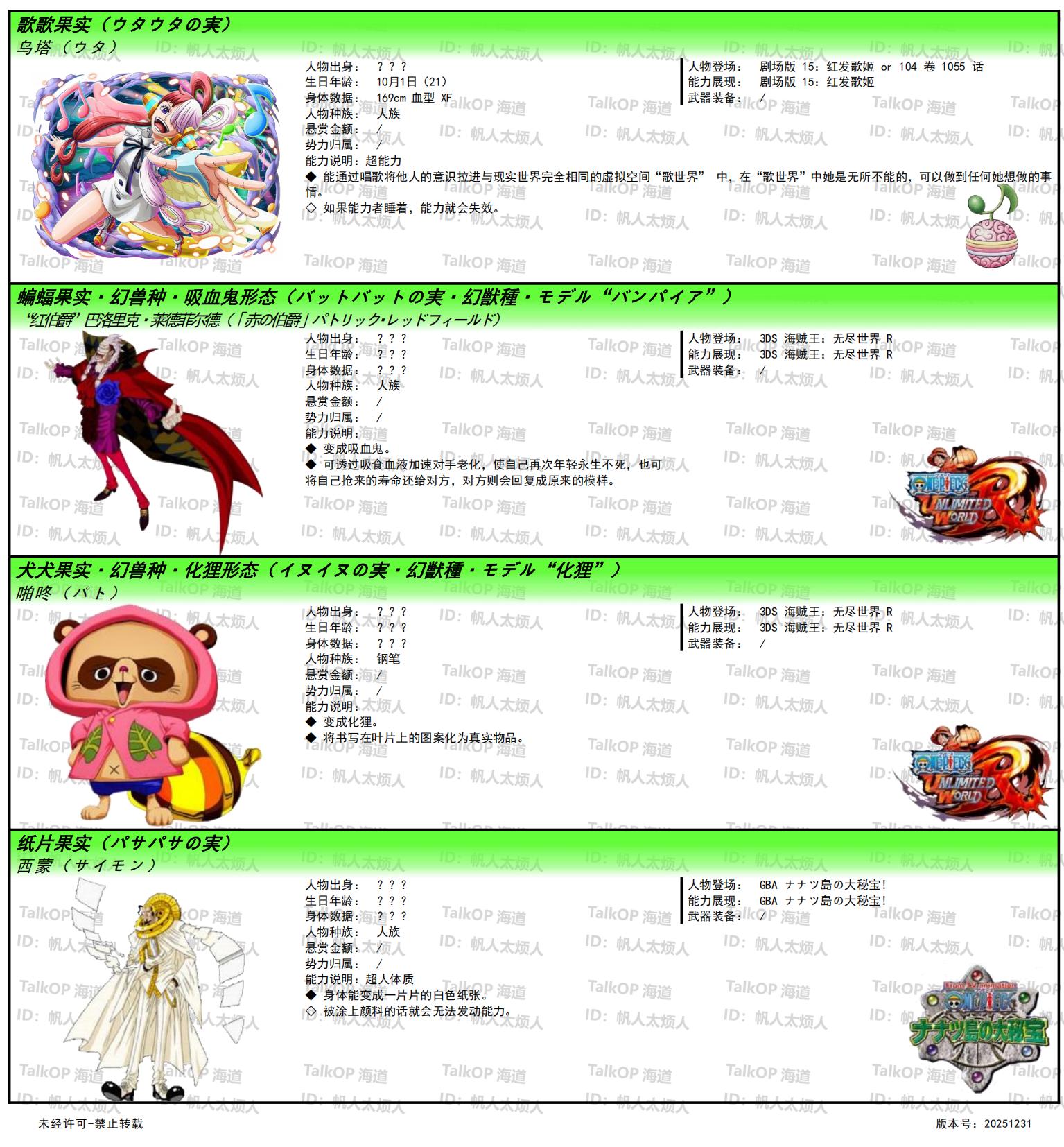 [资料整理] 【帆人杂谈】《海贼王恶魔果实能力者图鉴》(20251231更新) |