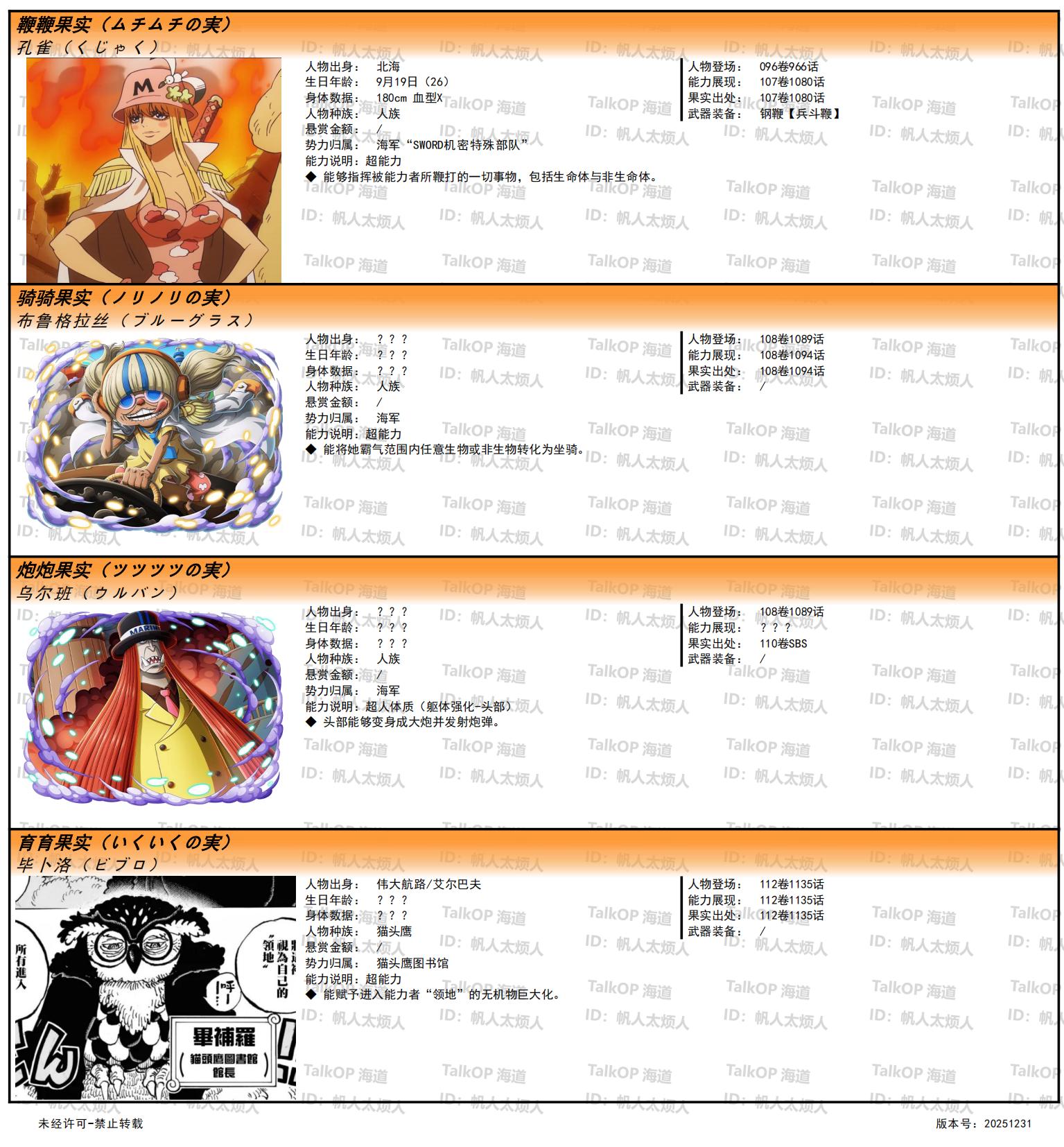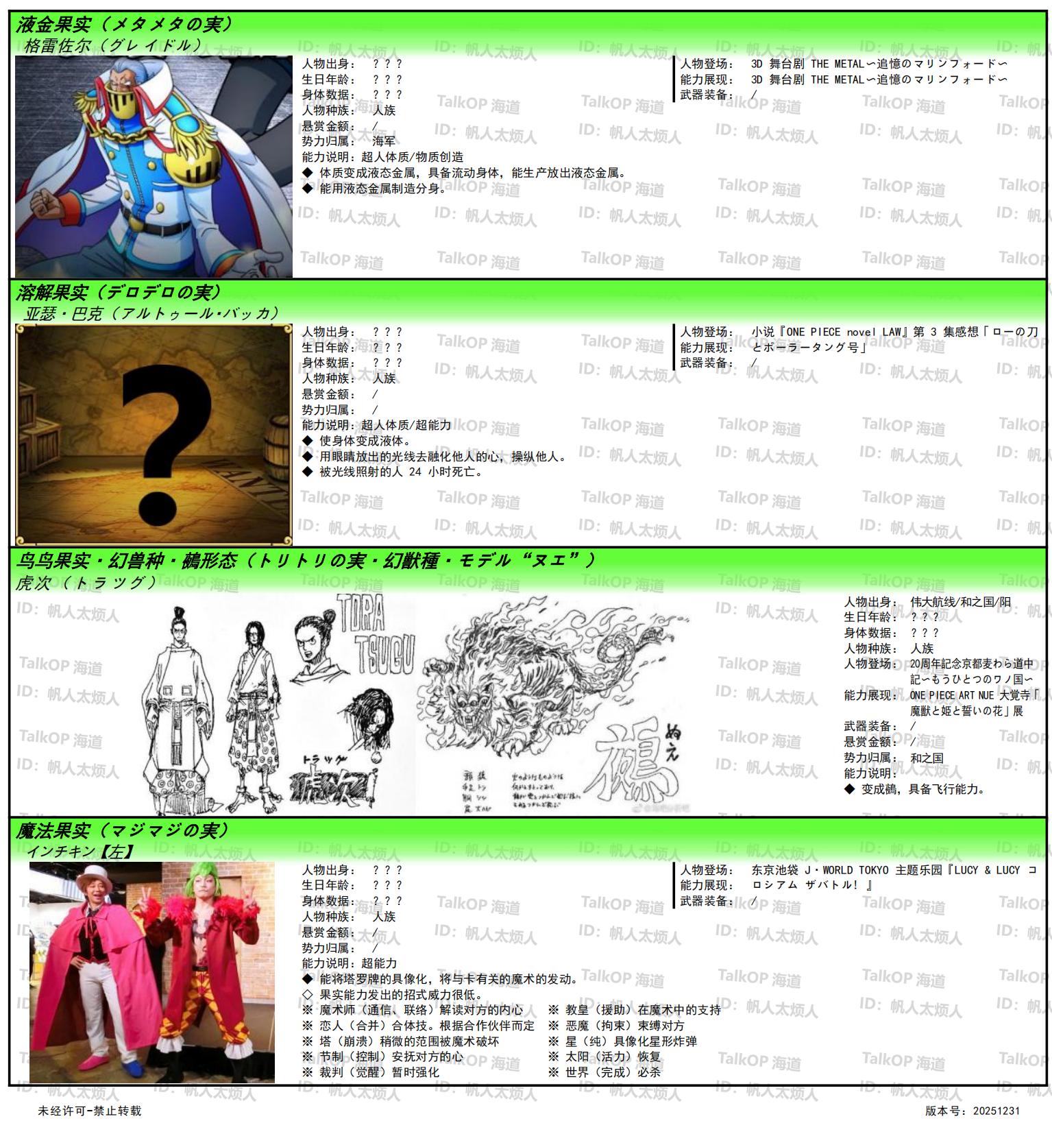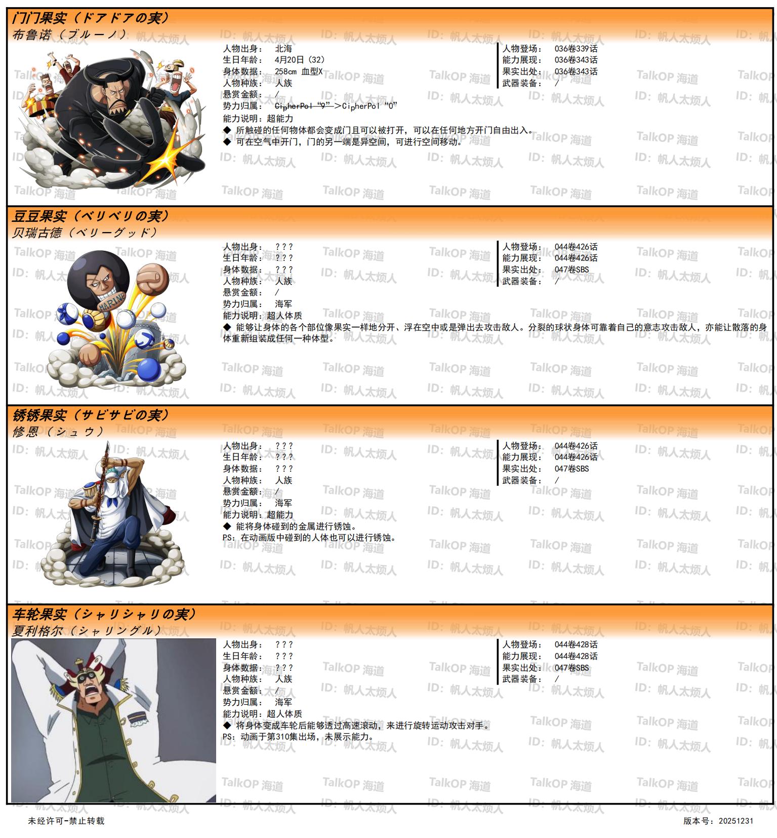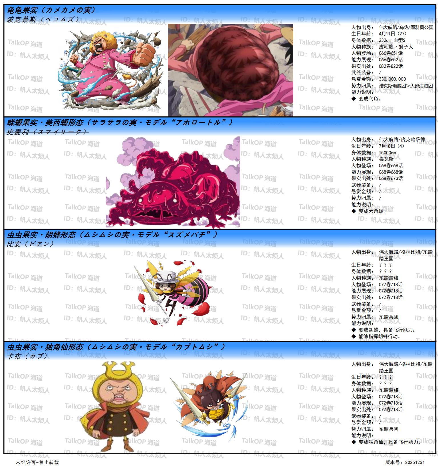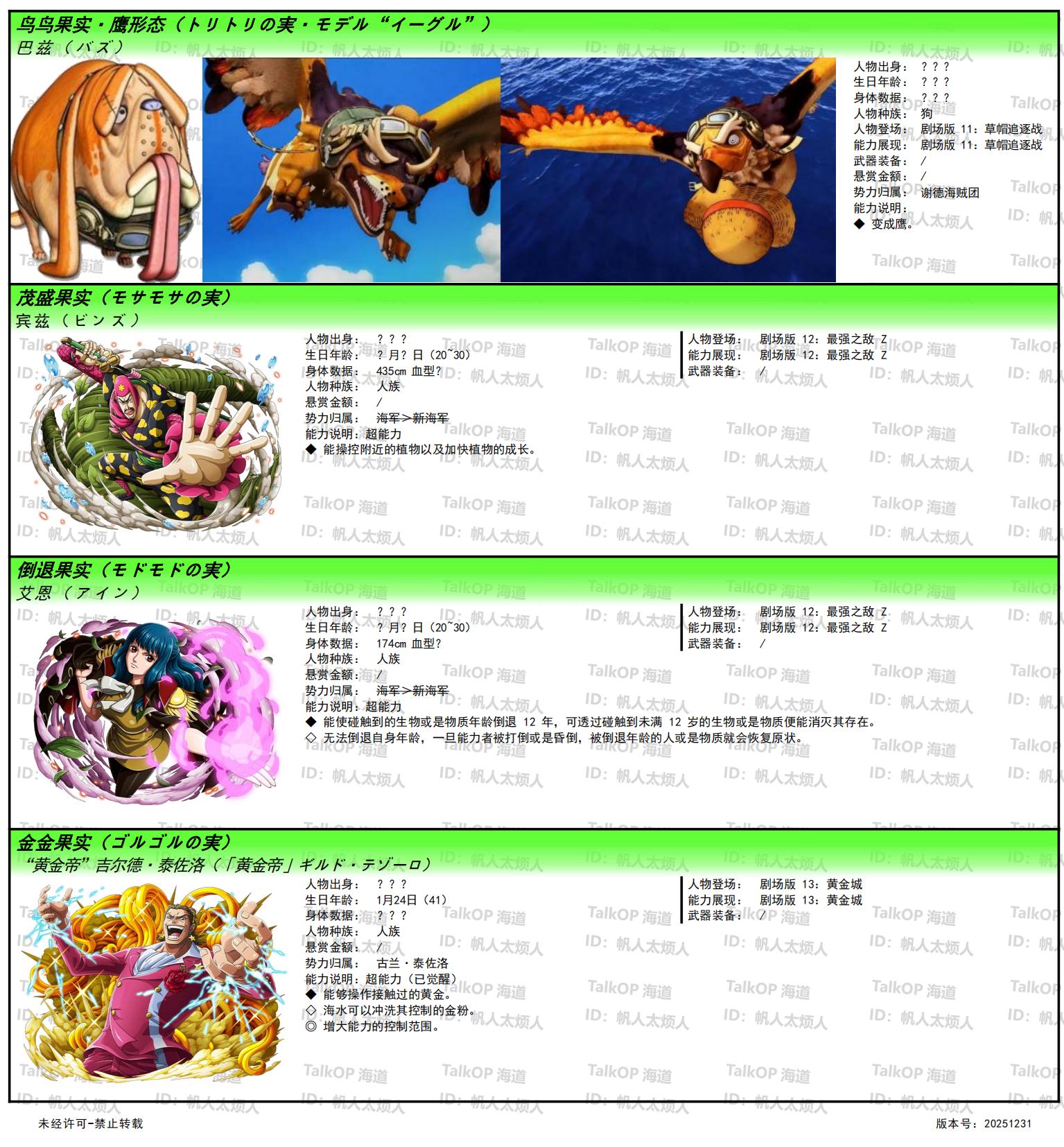 [资料整理] 【帆人杂谈】《海贼王恶魔果实能力者图鉴》(20251231更新) |