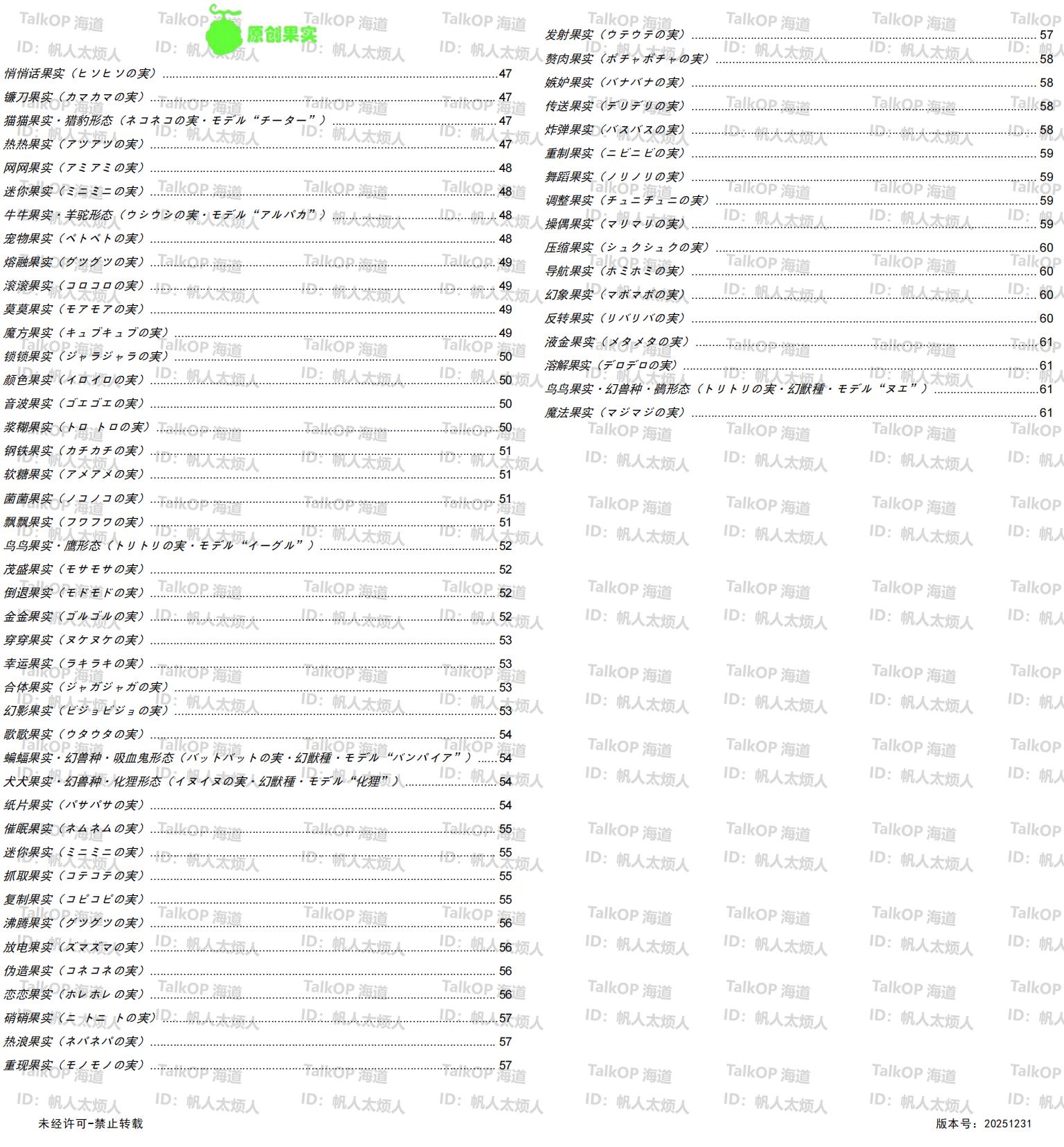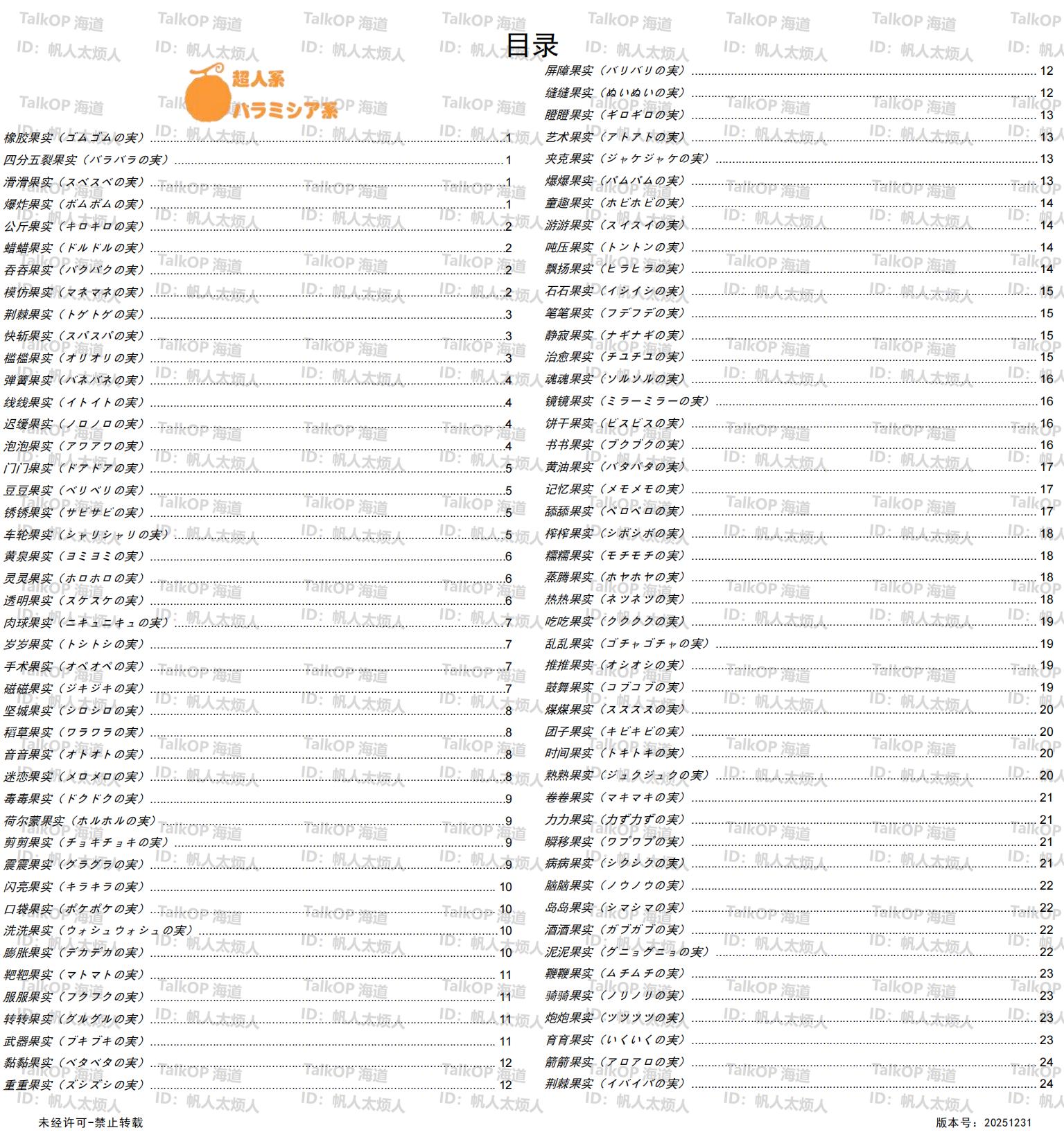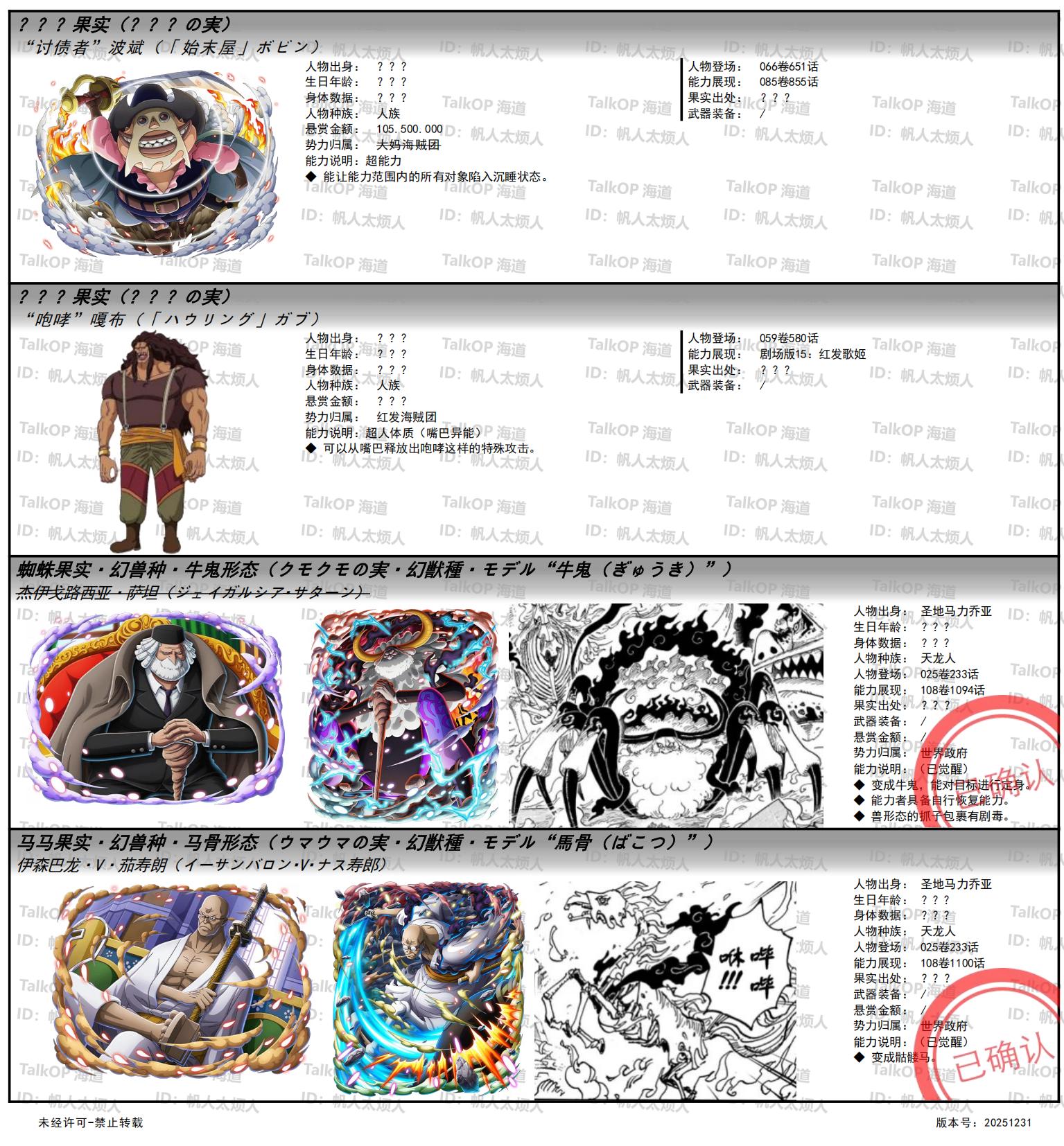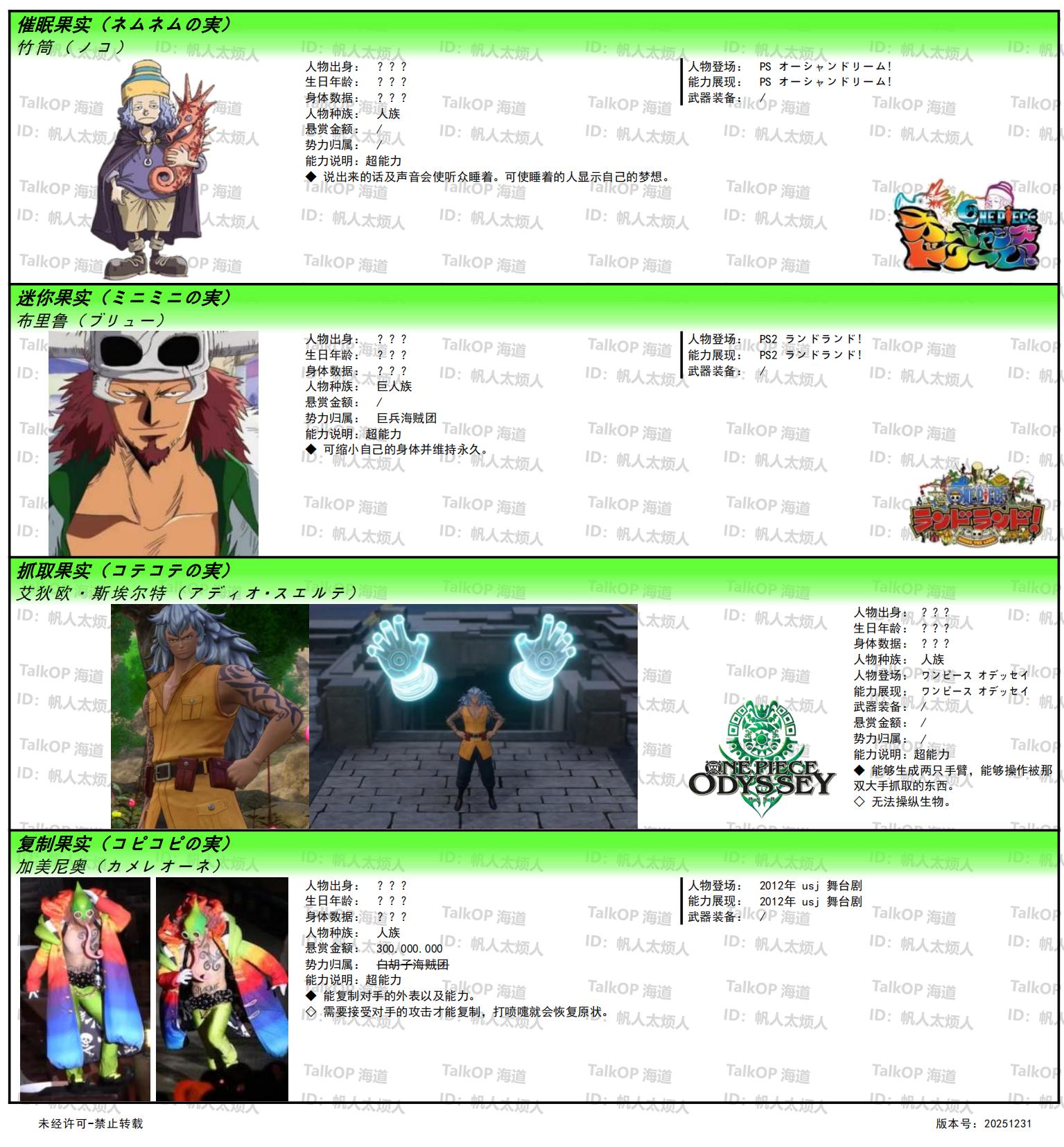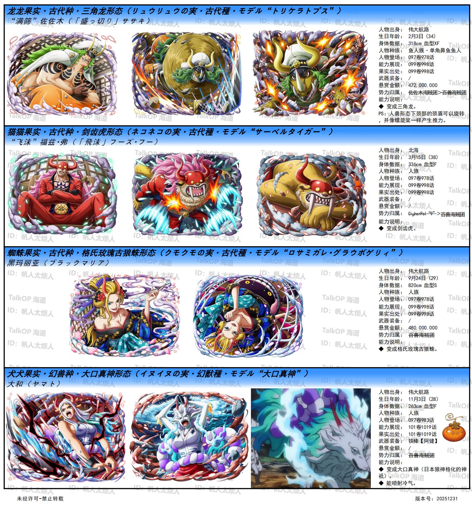 [资料整理] 【帆人杂谈】《海贼王恶魔果实能力者图鉴》(20251231更新) |
