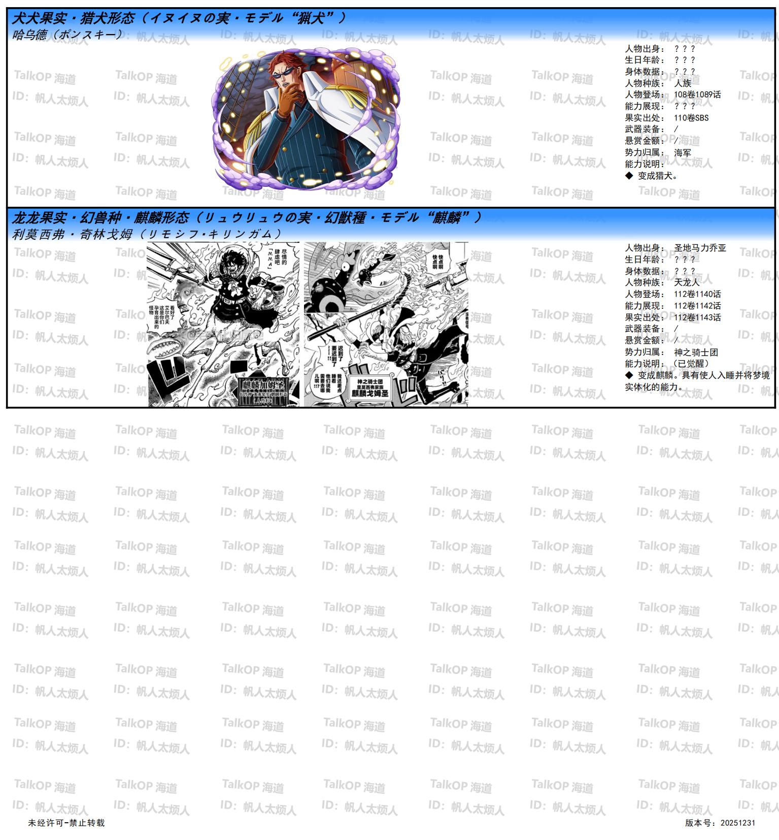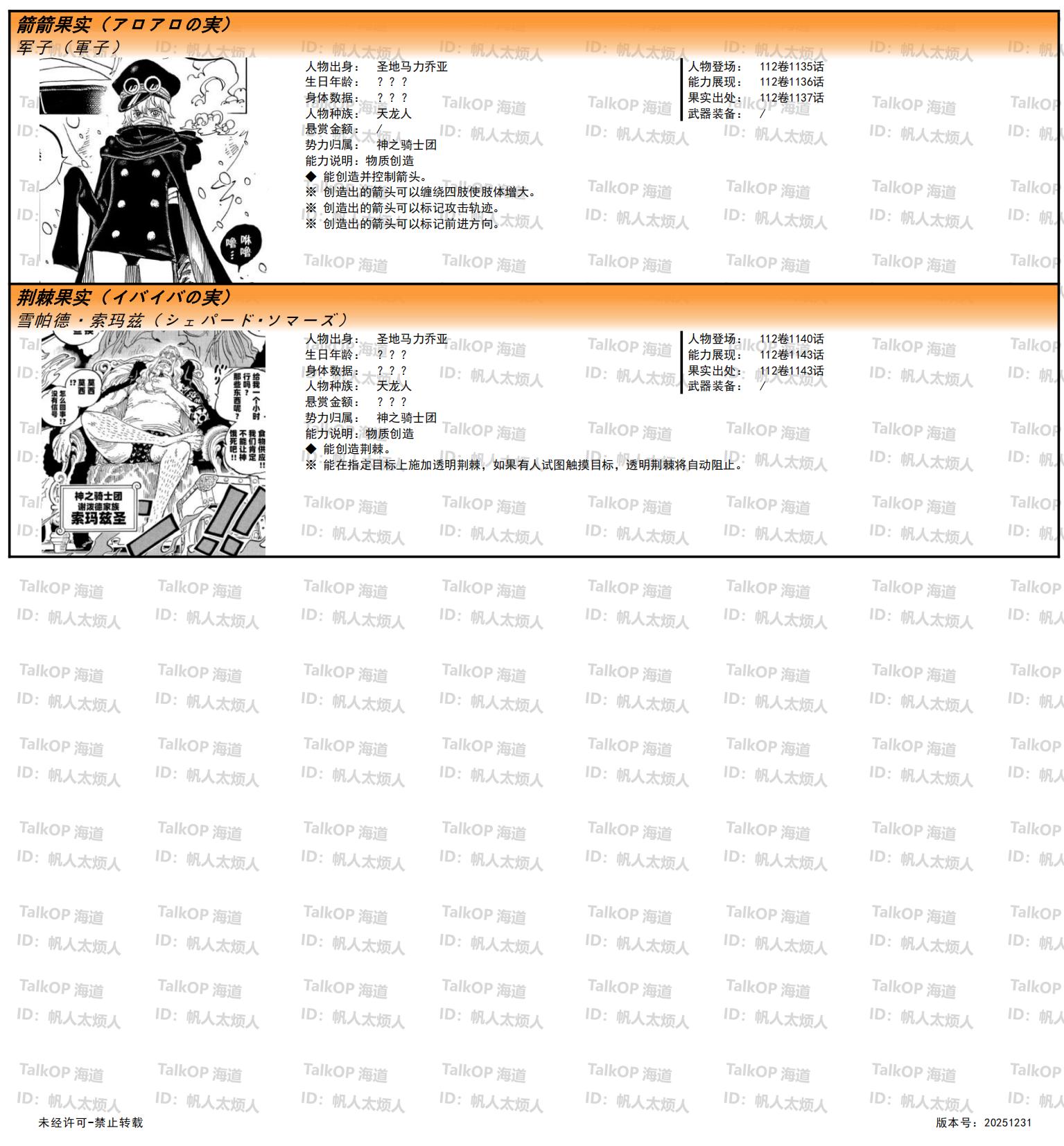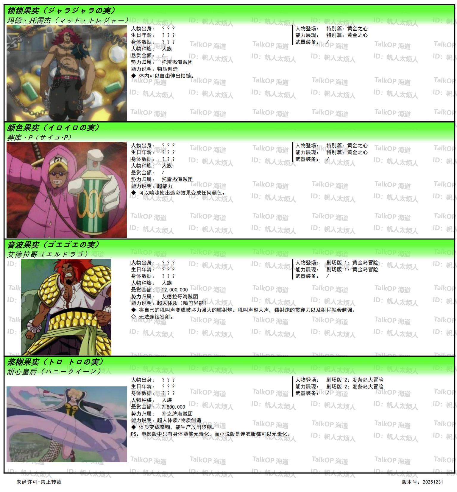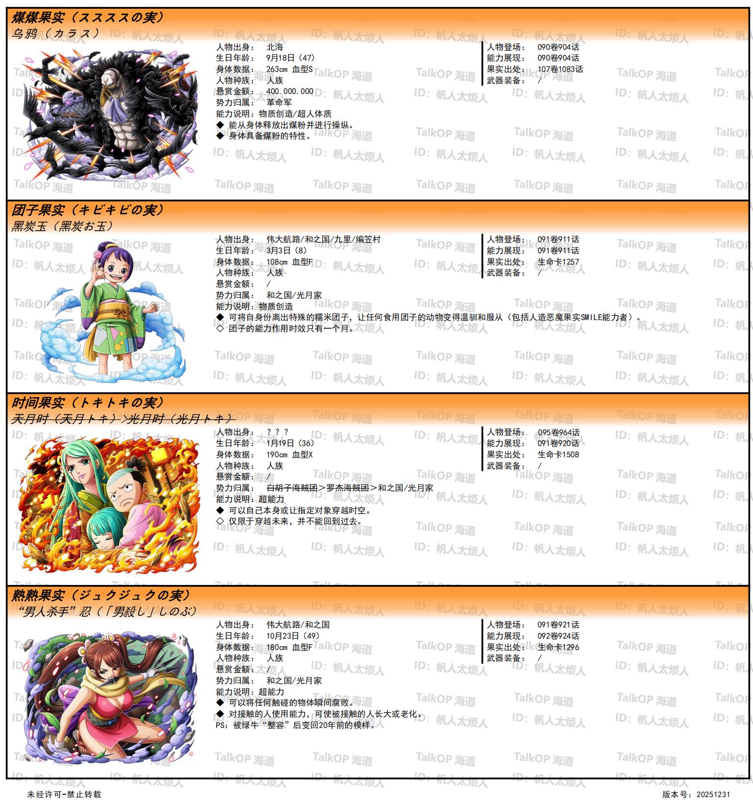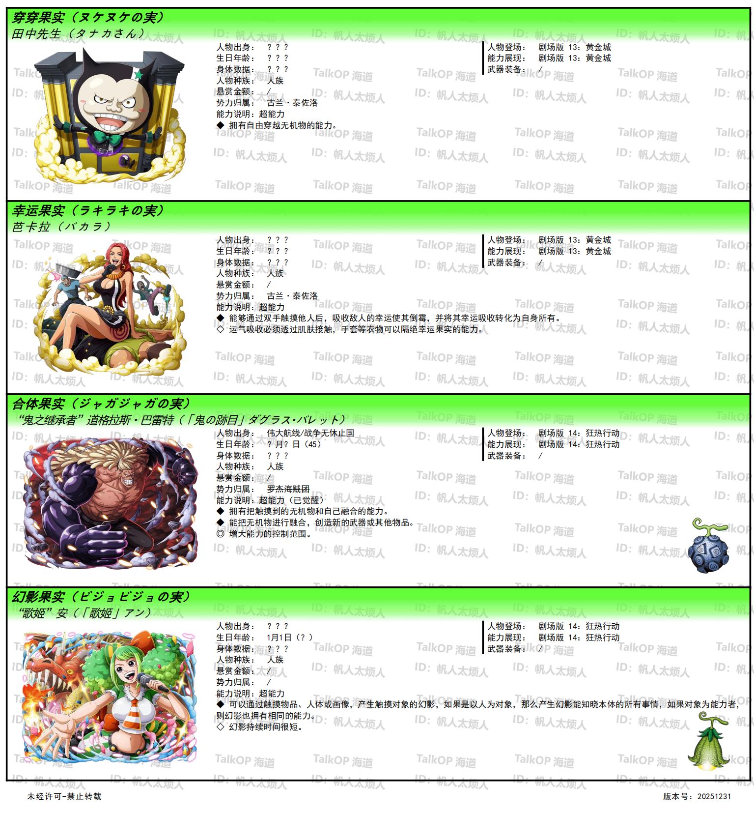 [资料整理] 【帆人杂谈】《海贼王恶魔果实能力者图鉴》(20251231更新) |