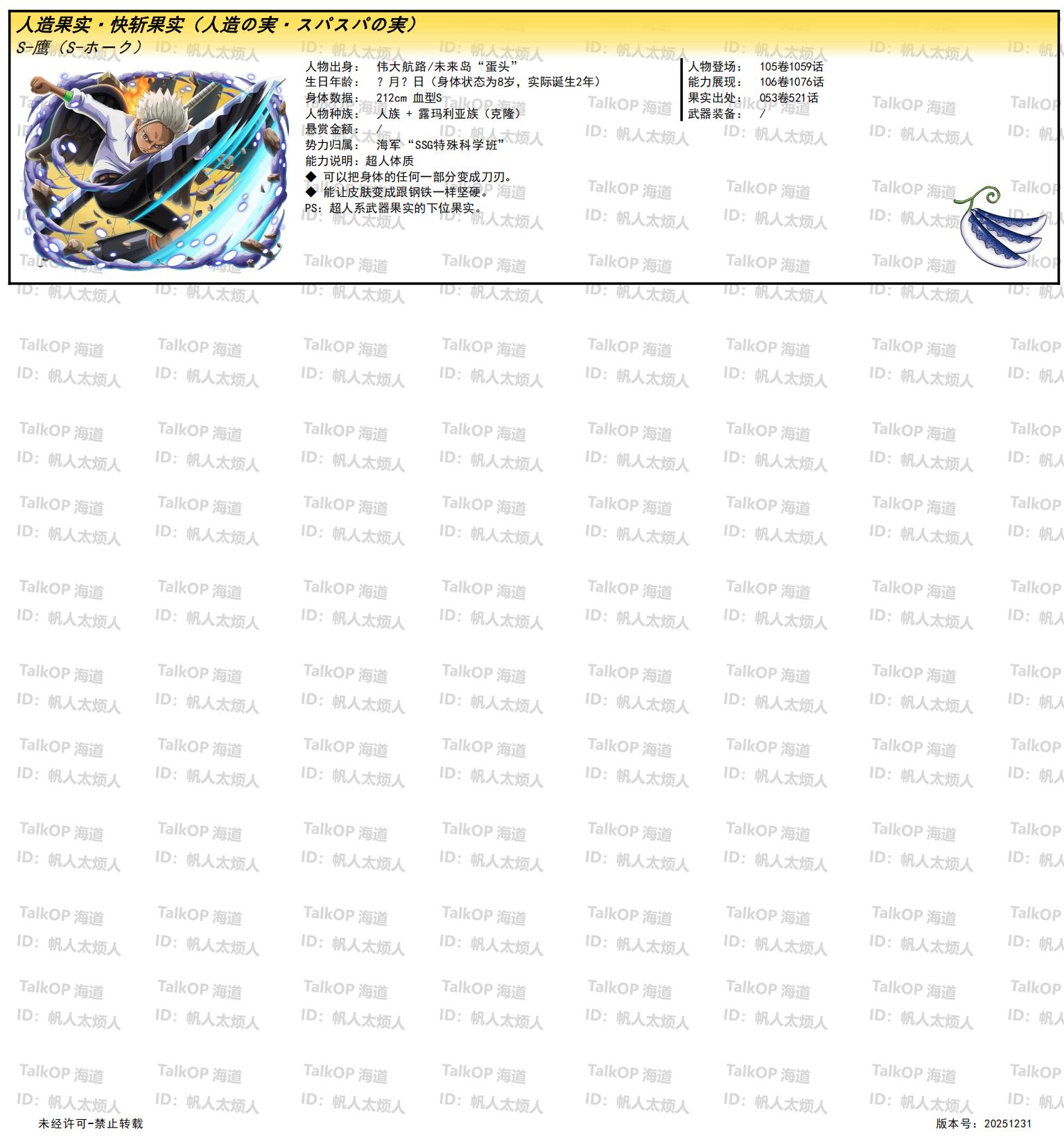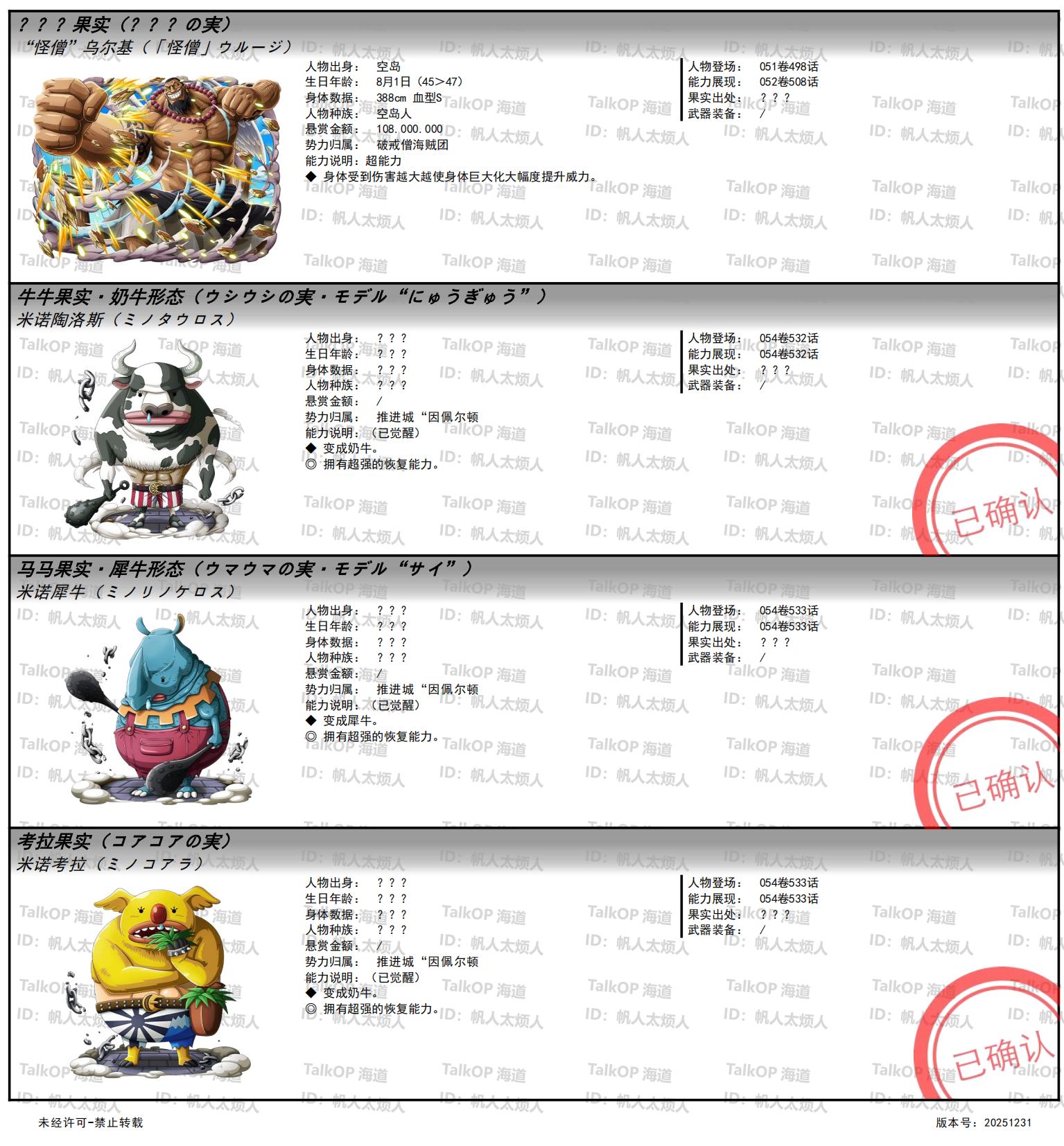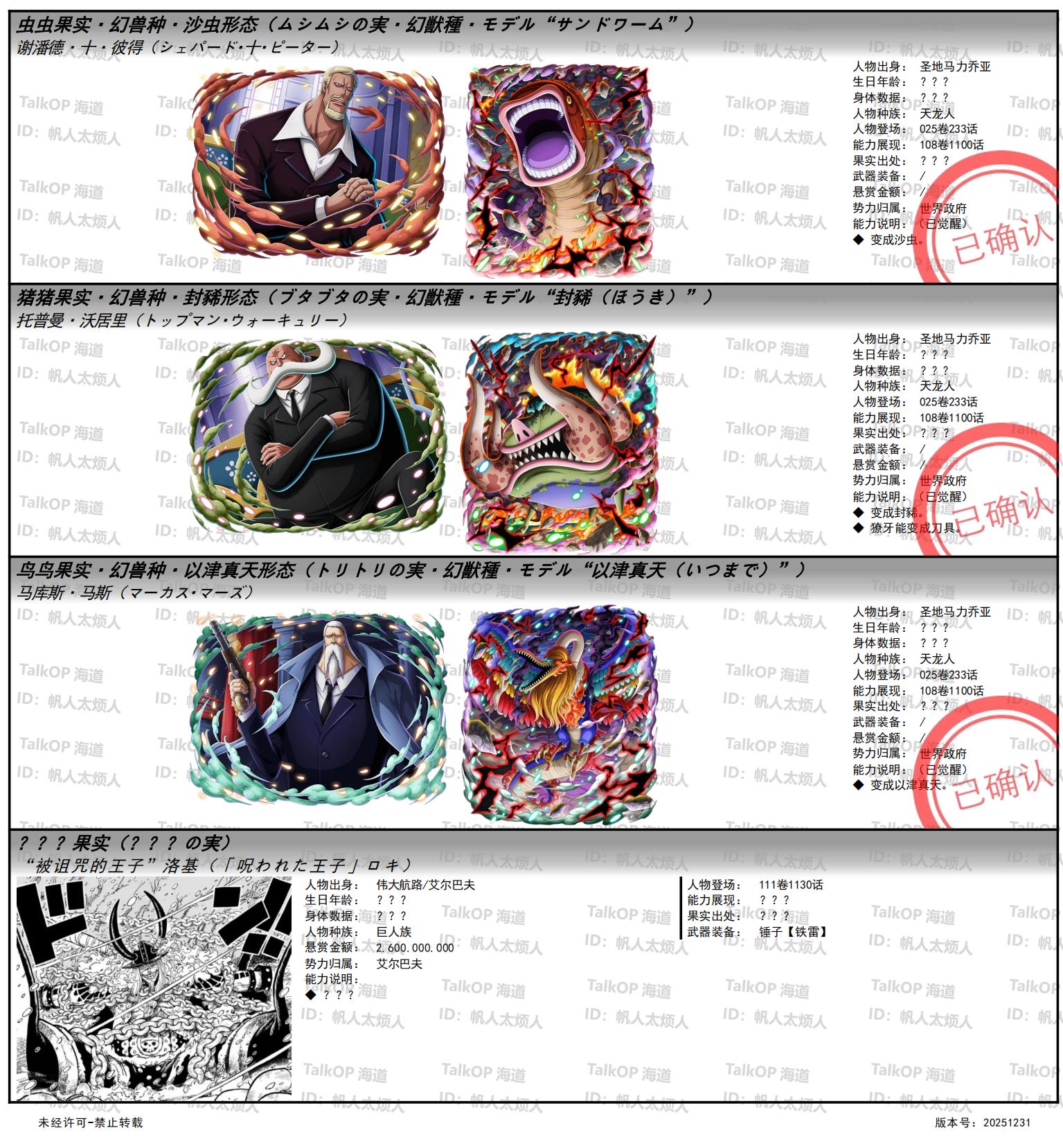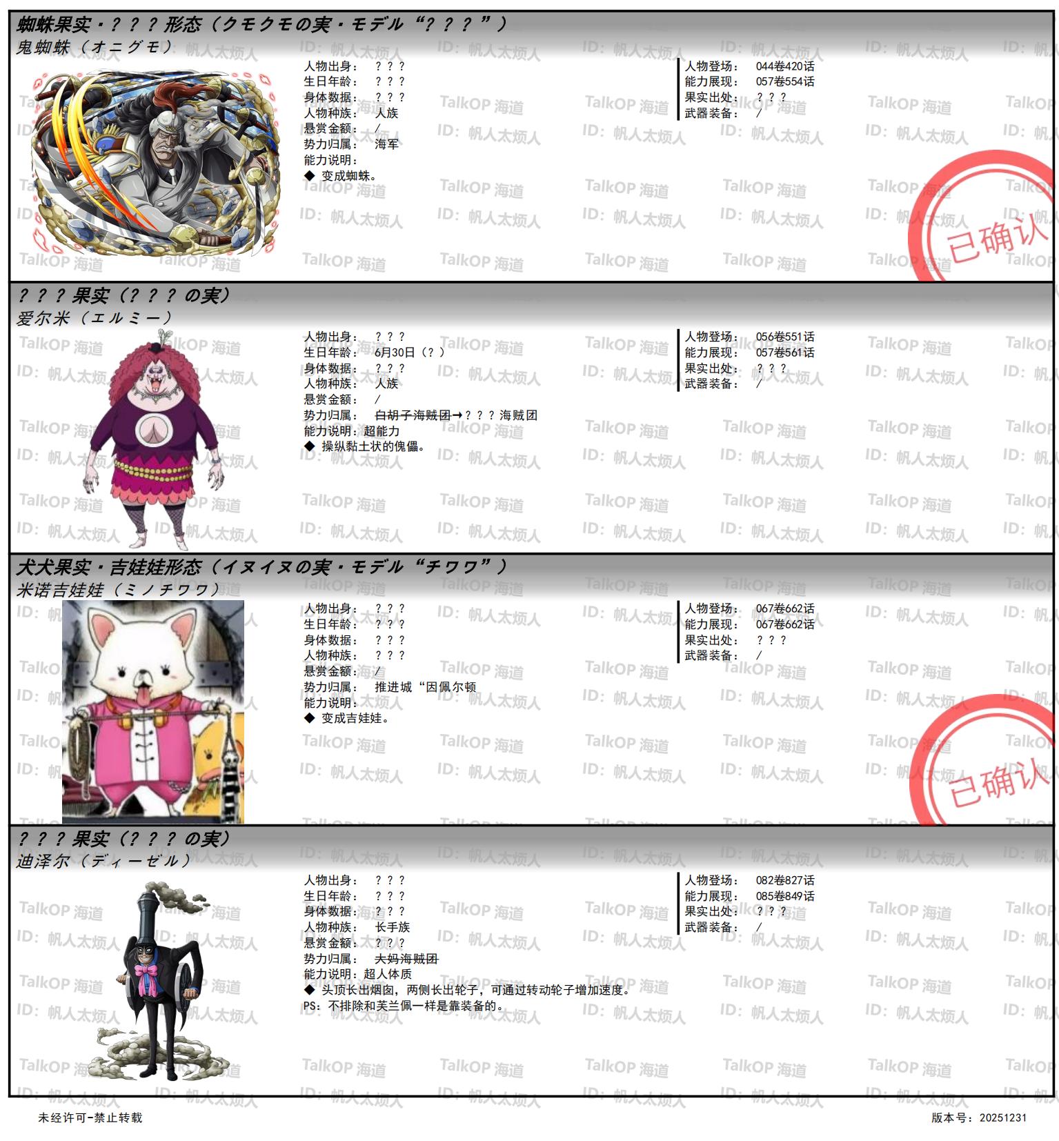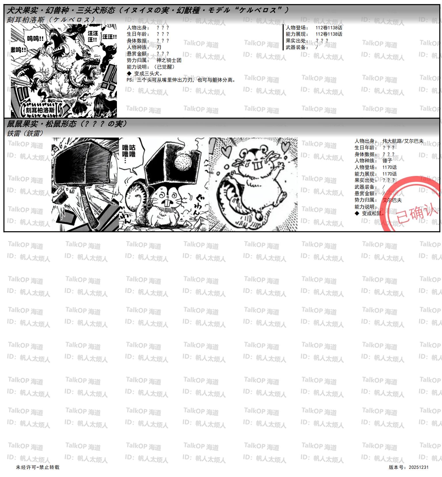 [资料整理] 【帆人杂谈】《海贼王恶魔果实能力者图鉴》(20251231更新) |