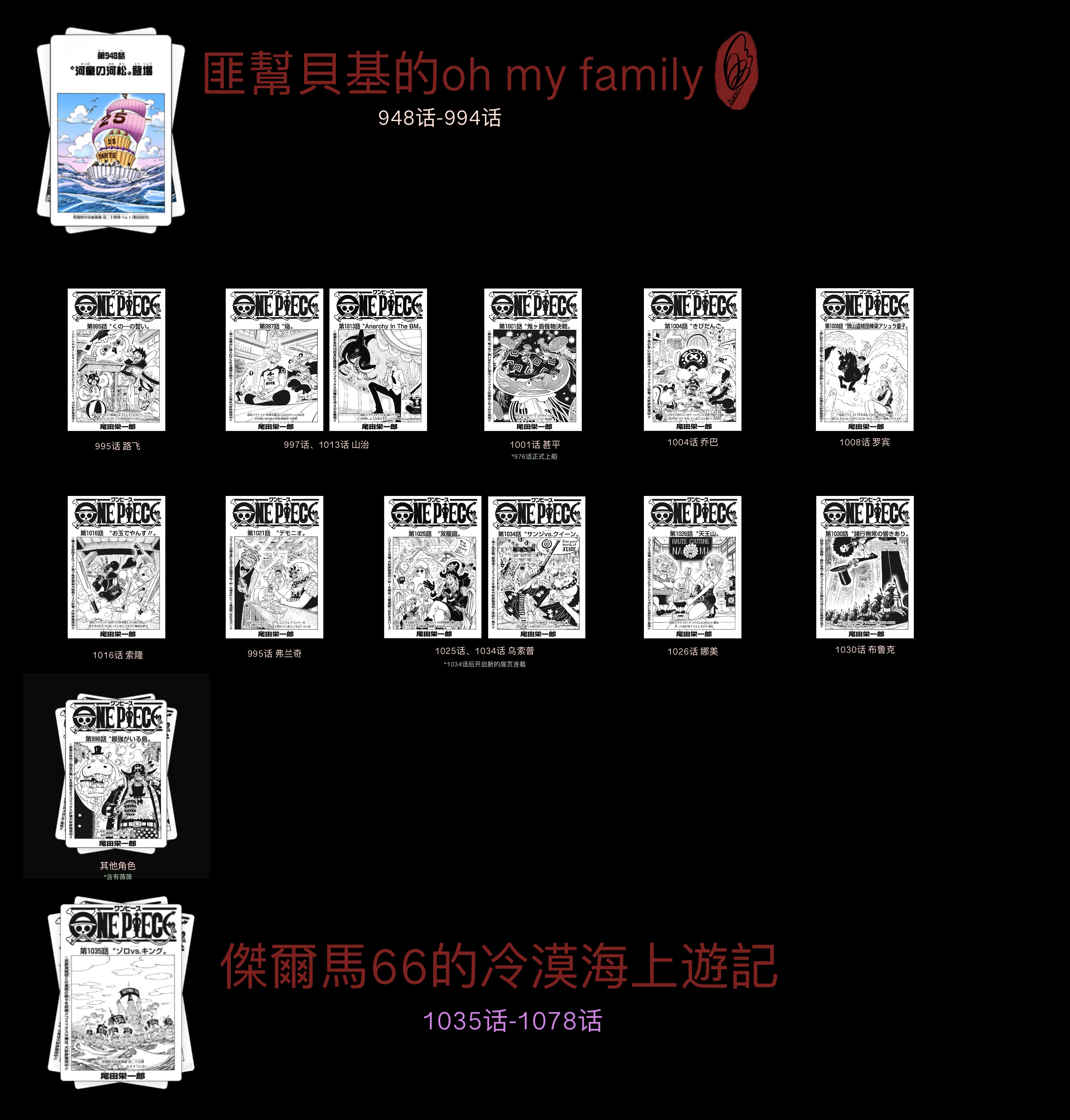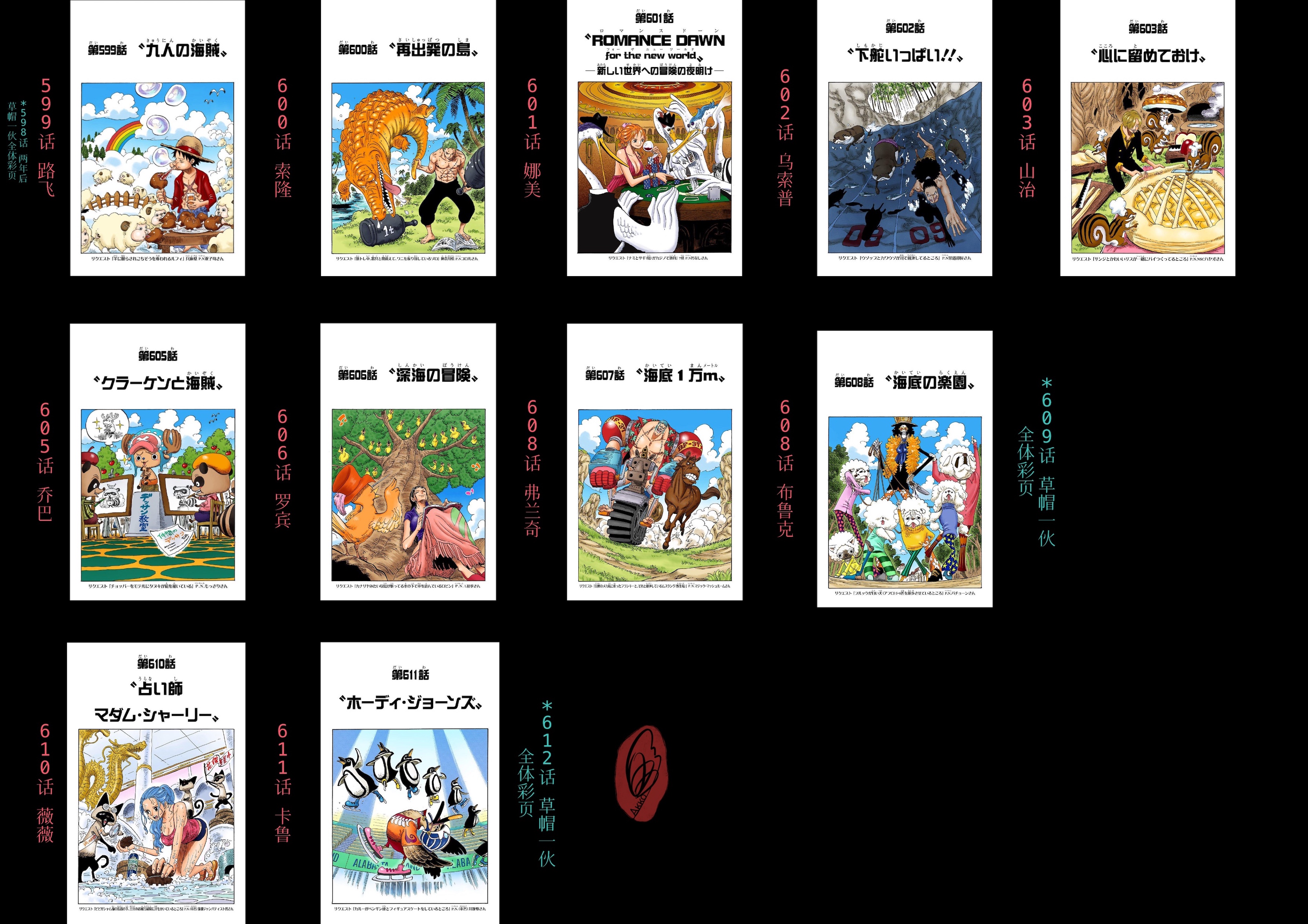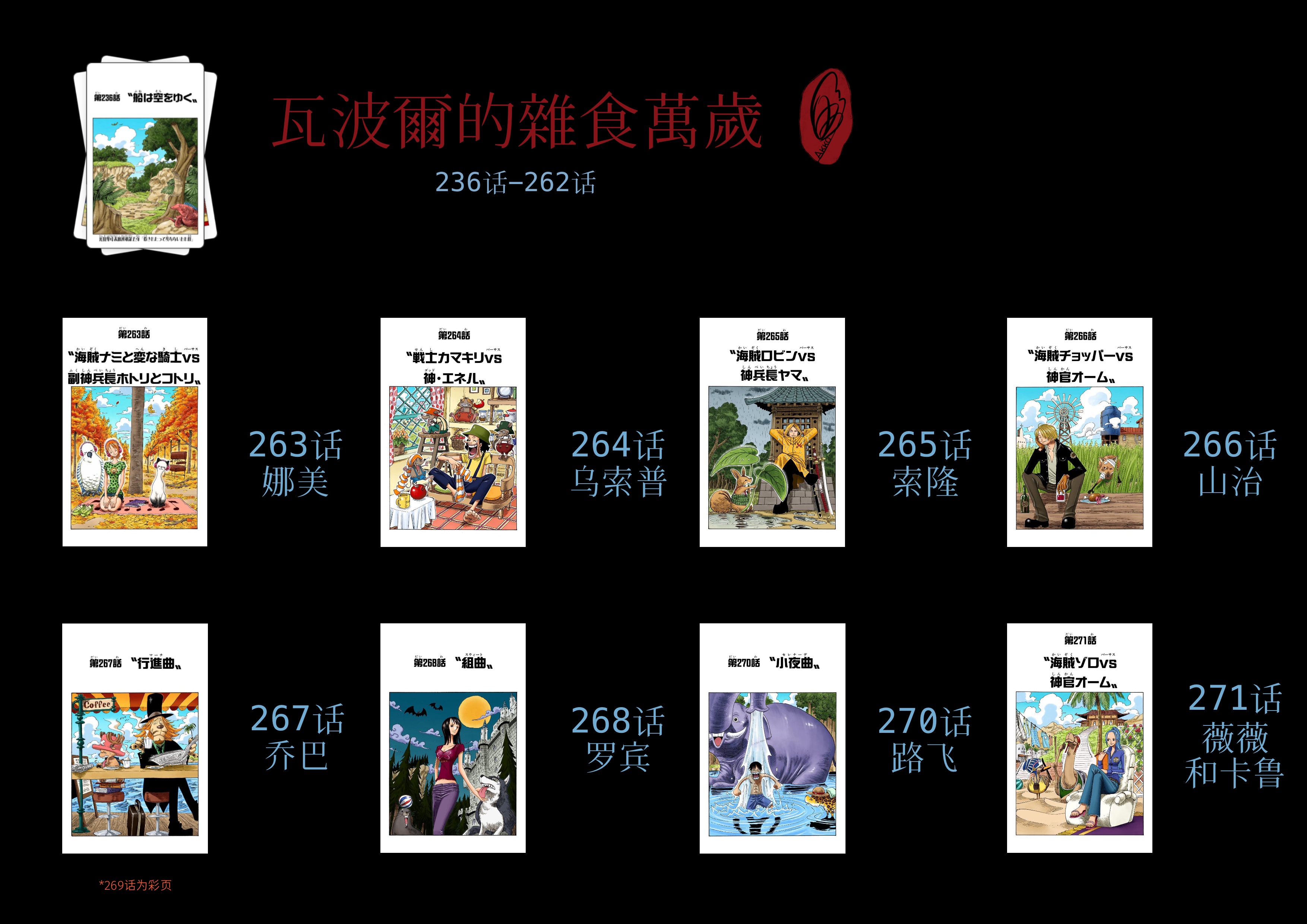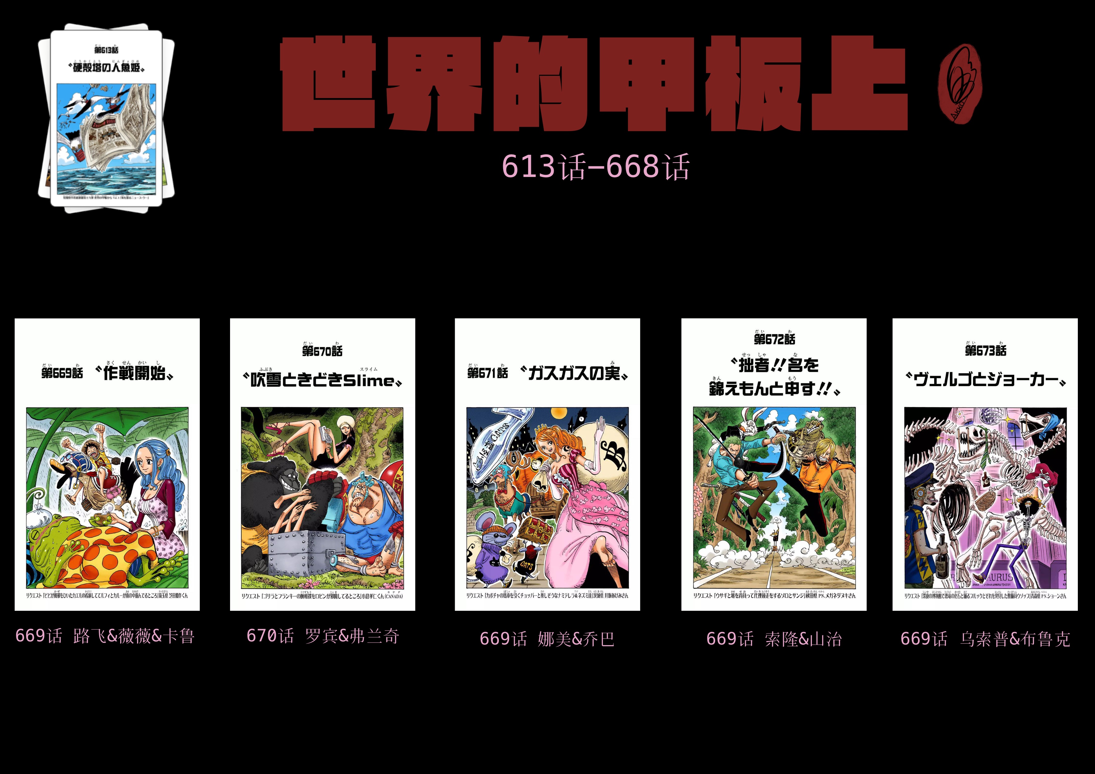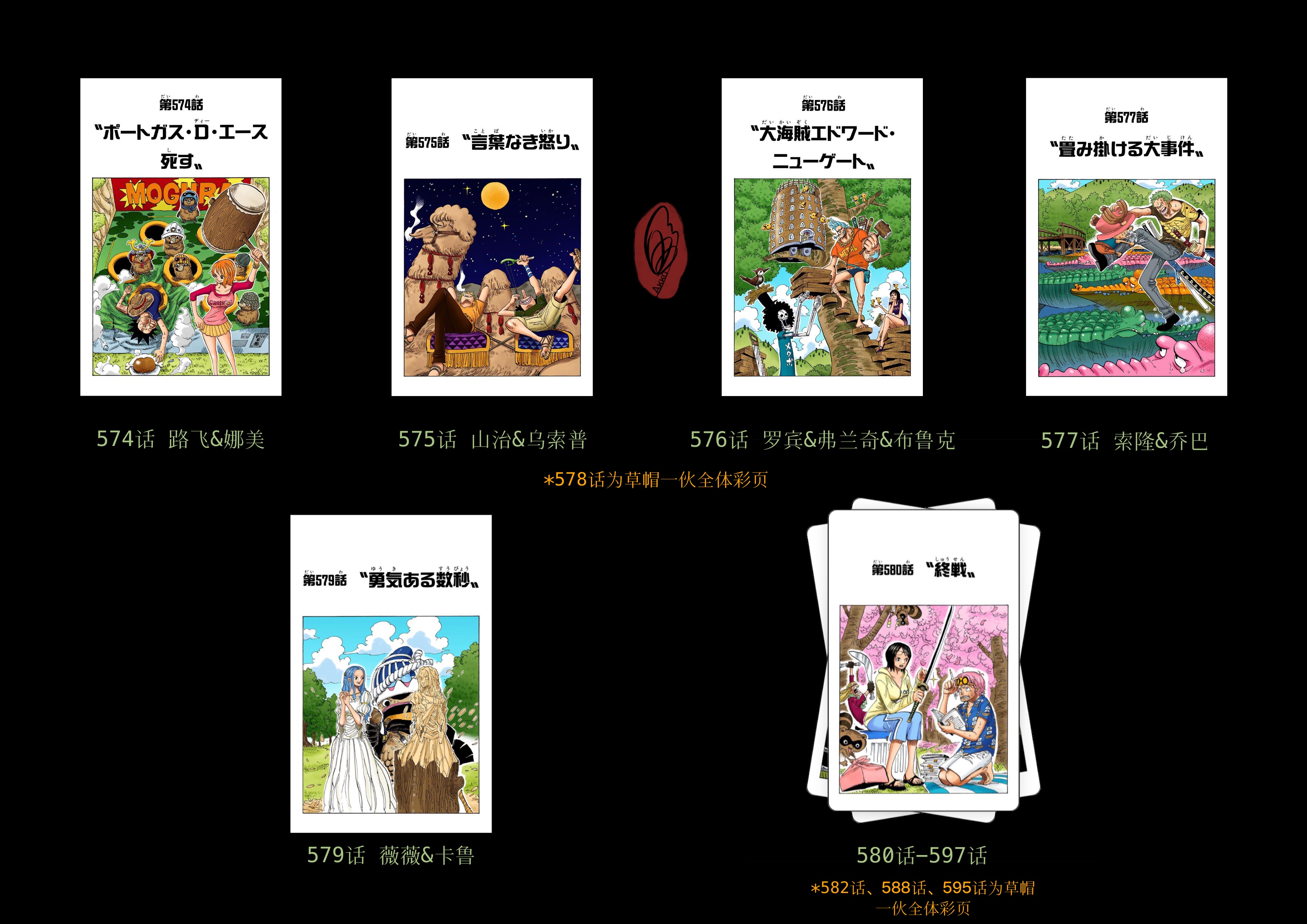 截至本帖编辑时间,ONE PIECE连载至今共有25弹短期扉页连载