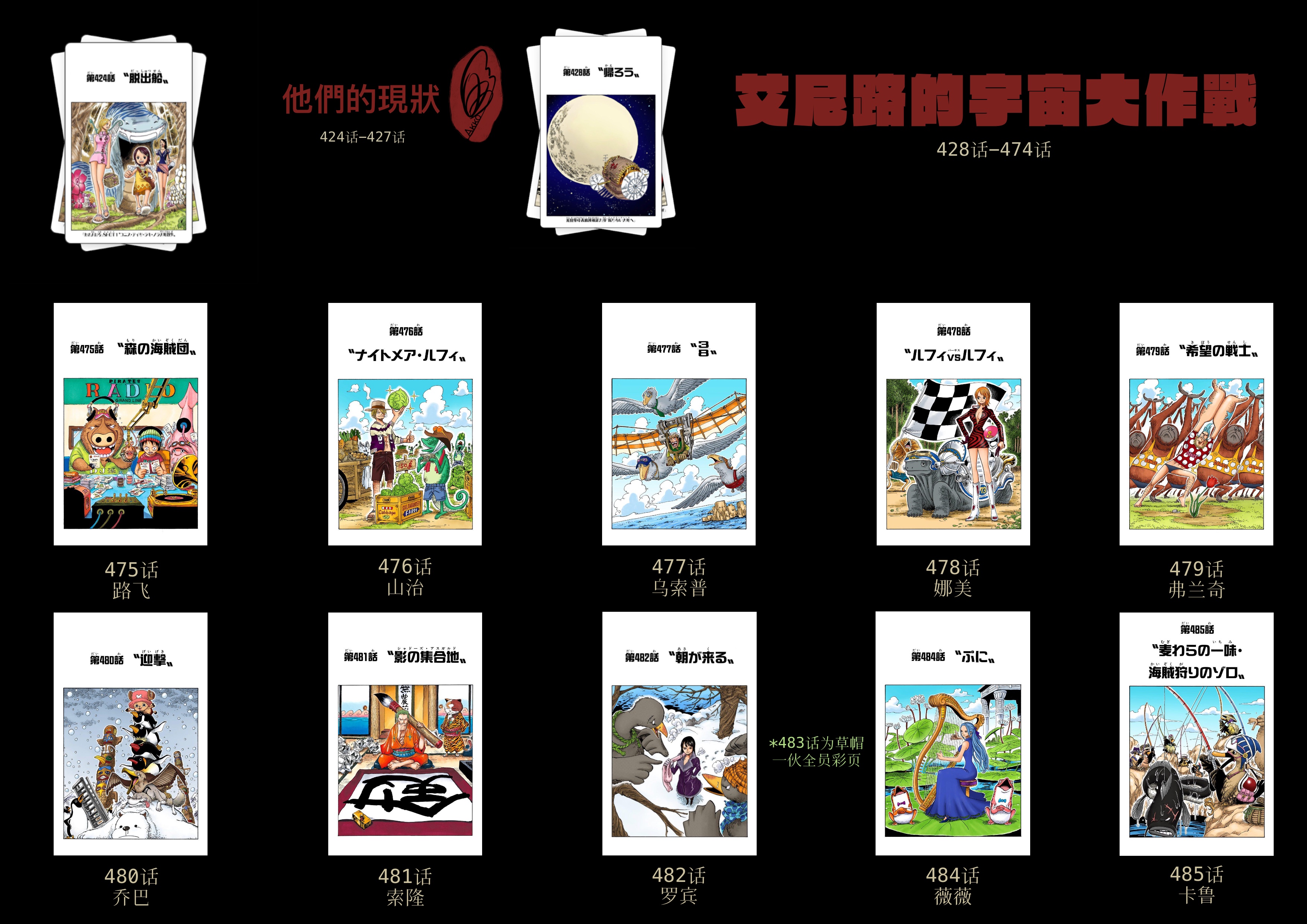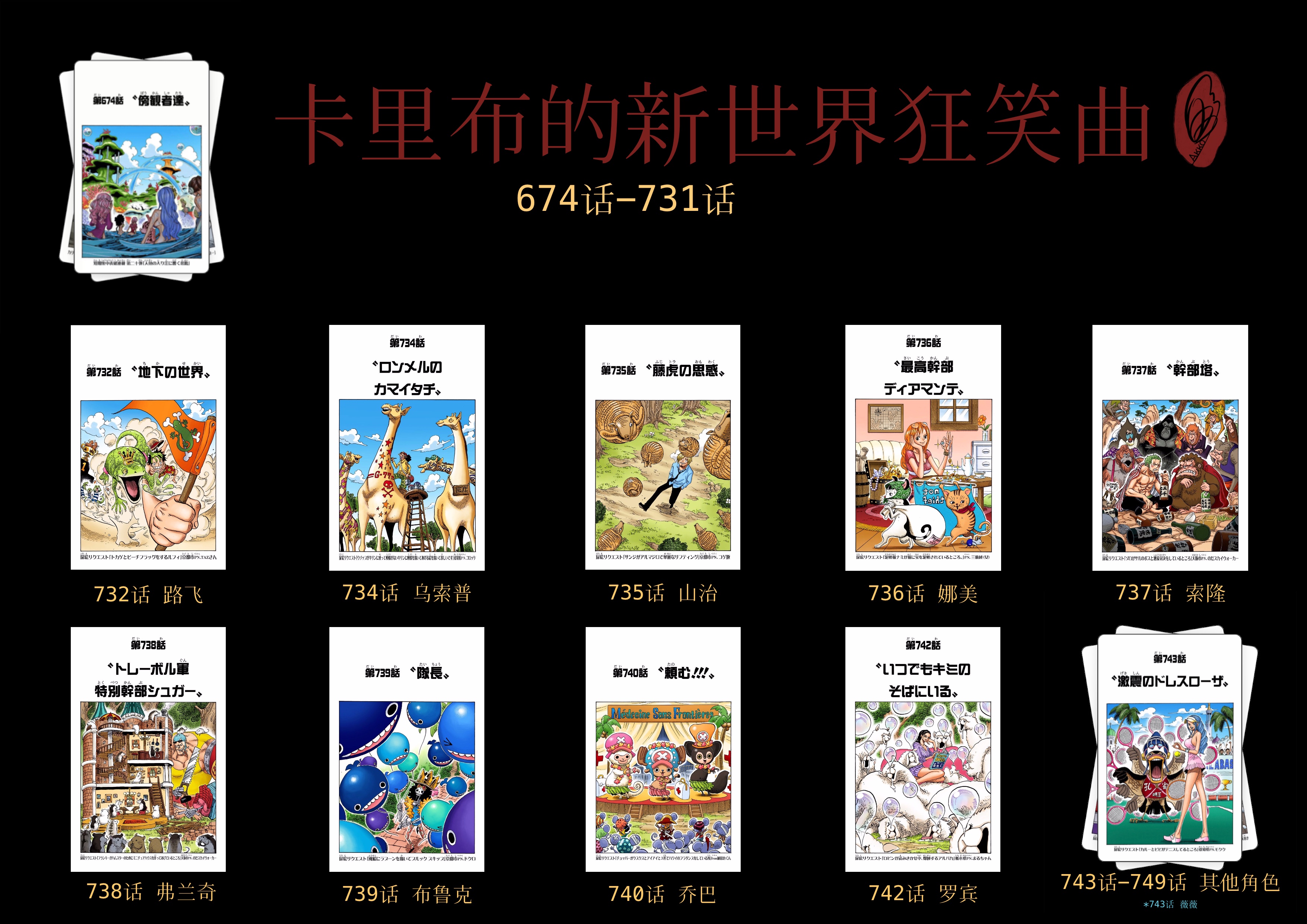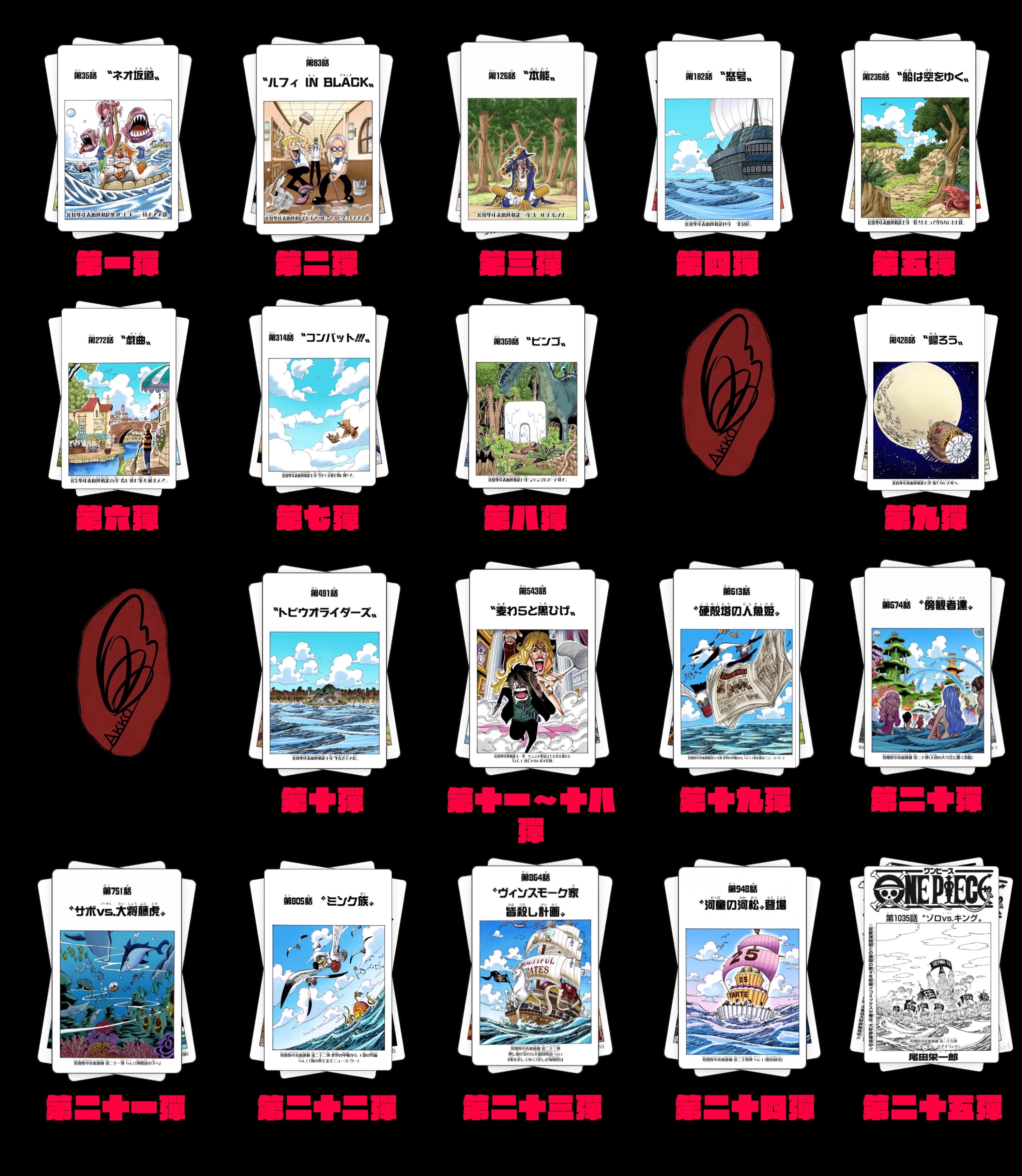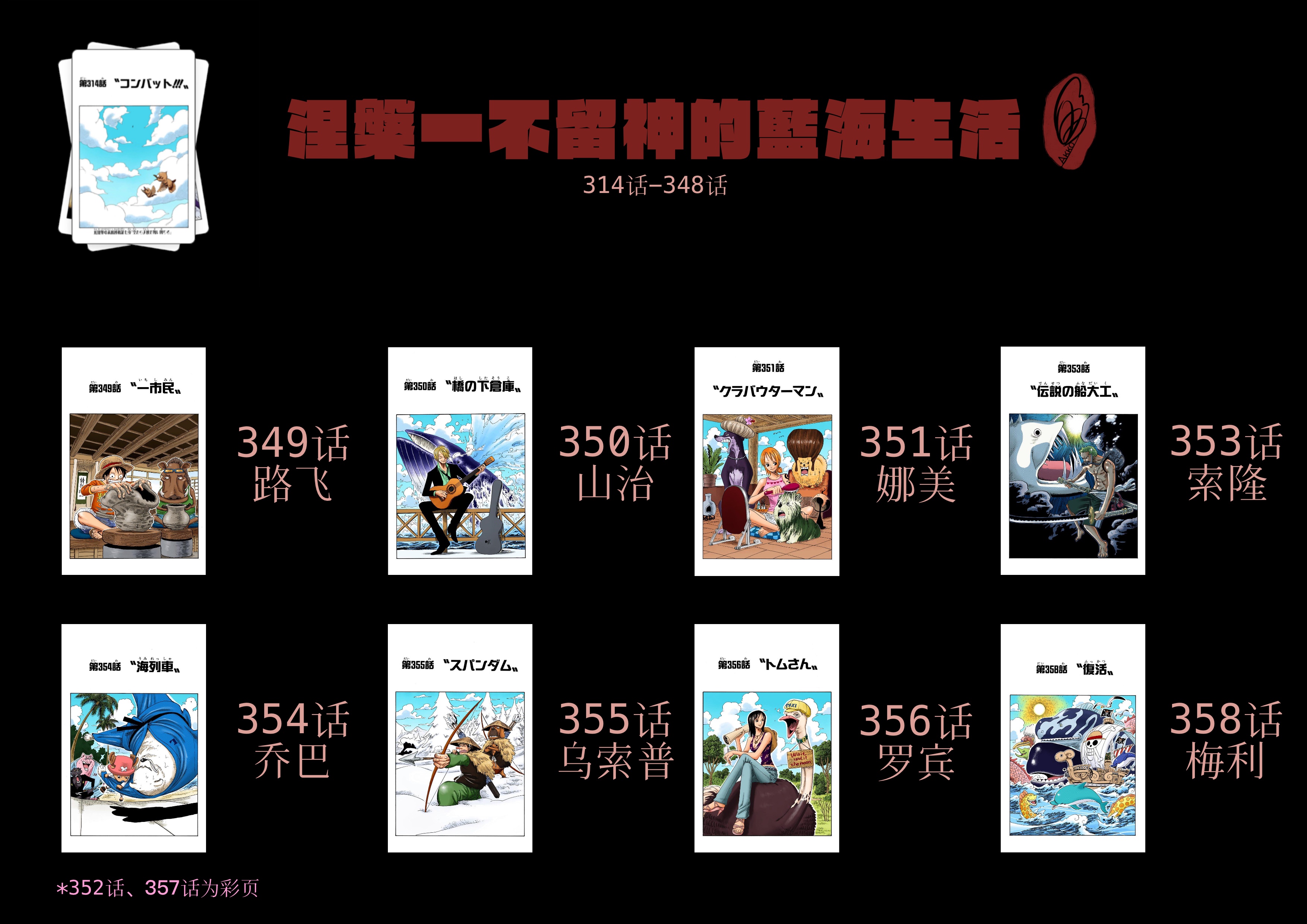 截至本帖编辑时间,ONE PIECE连载至今共有25弹短期扉页连载