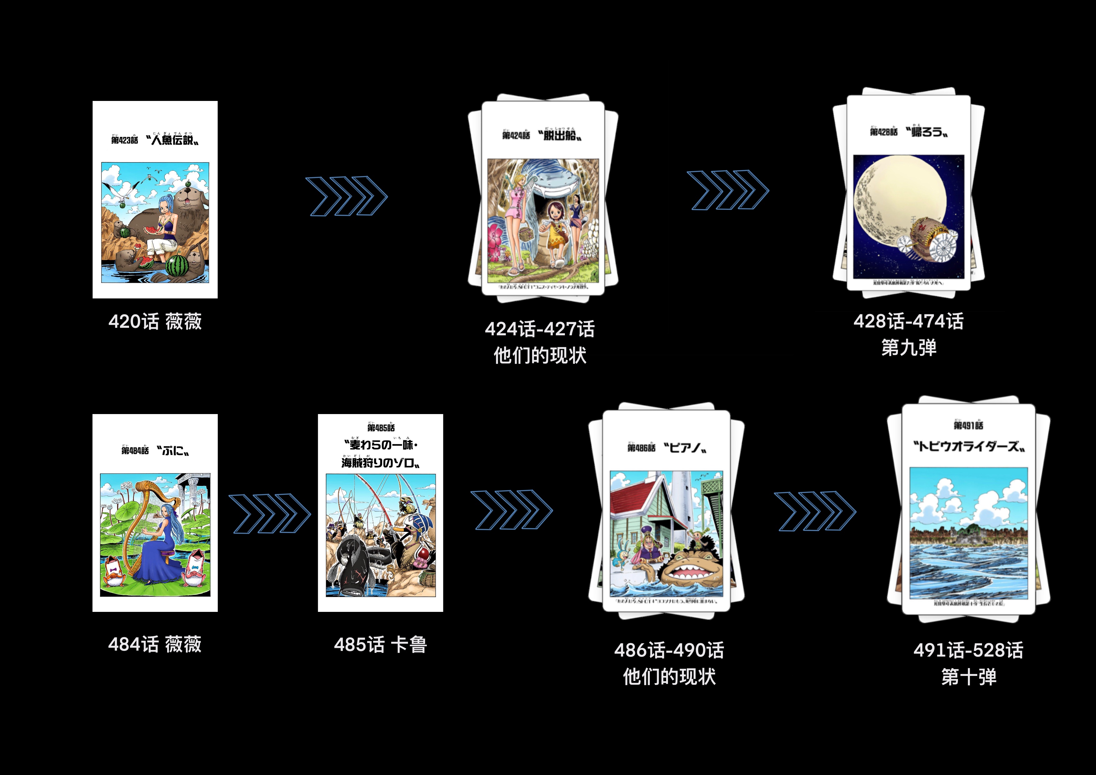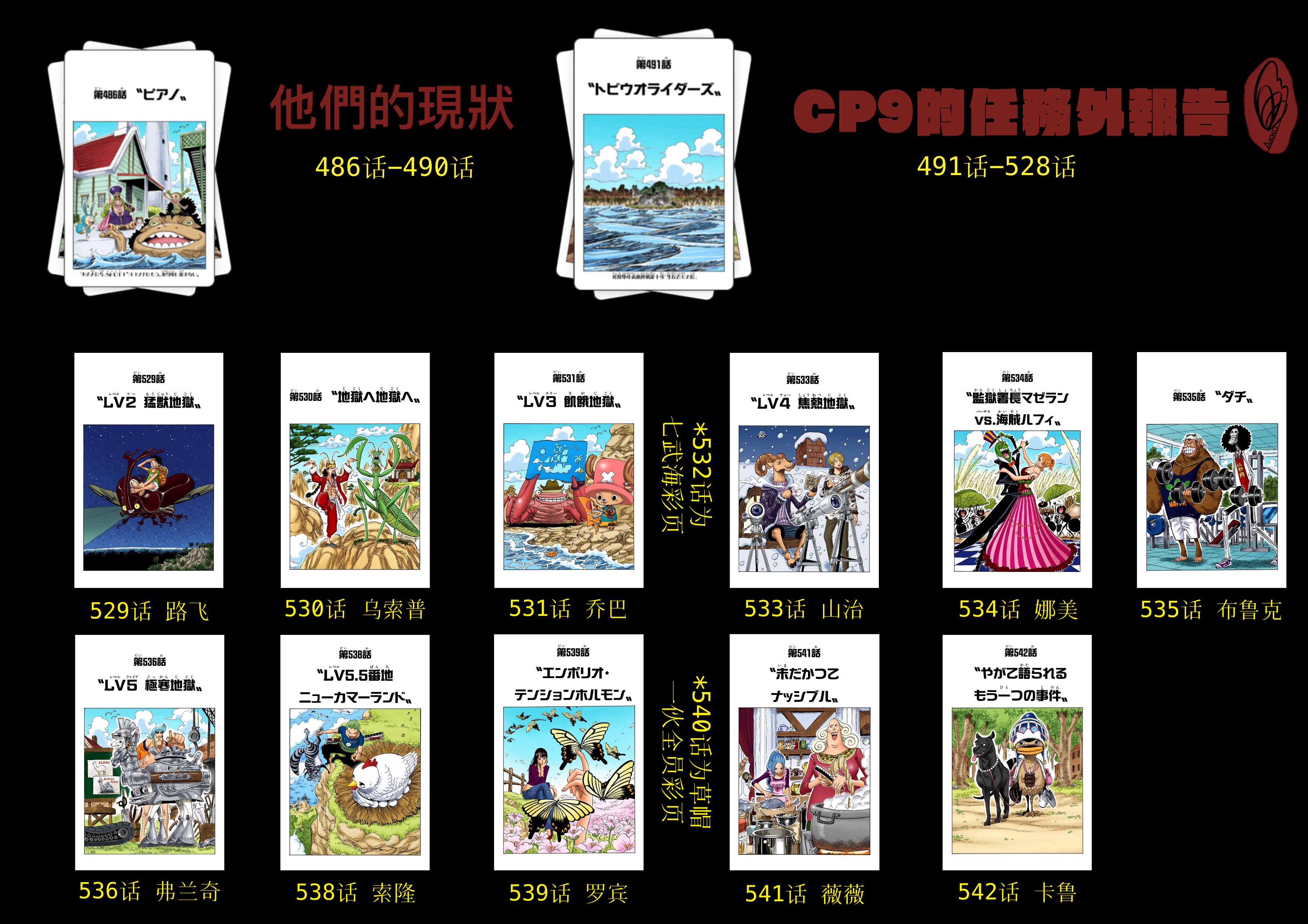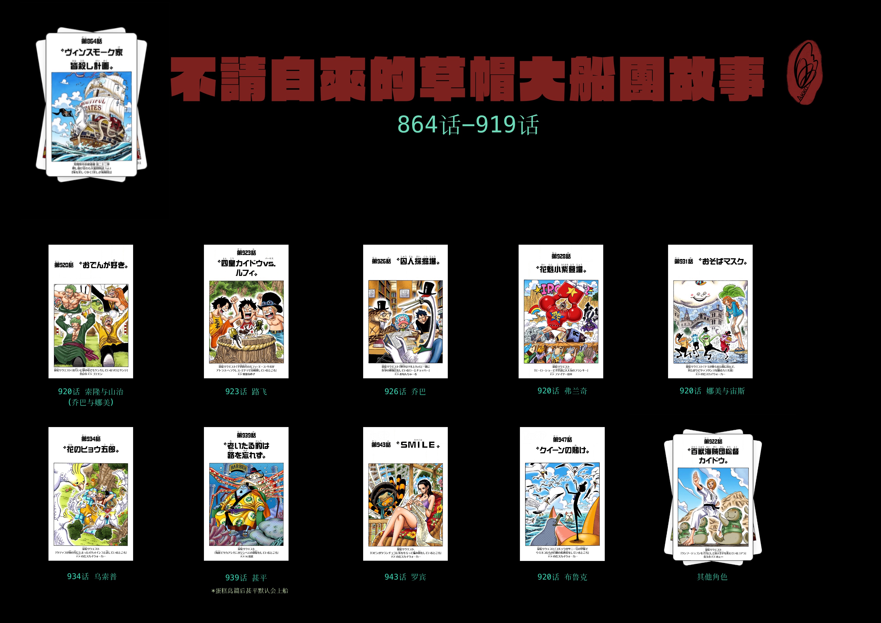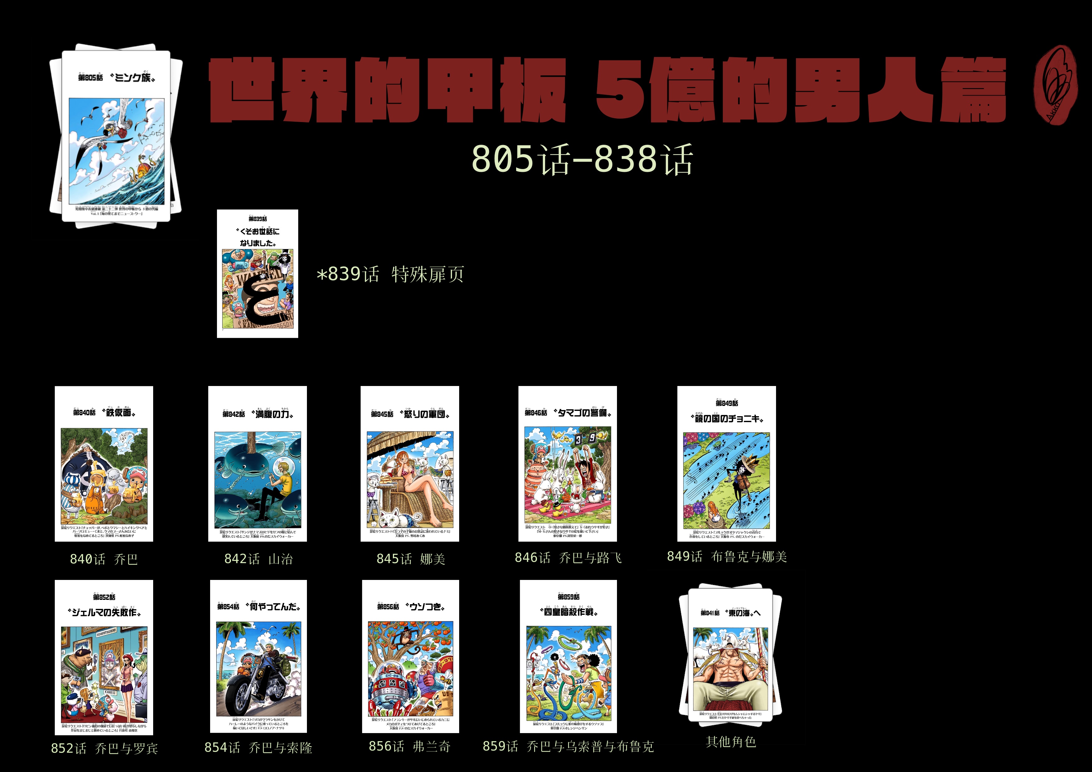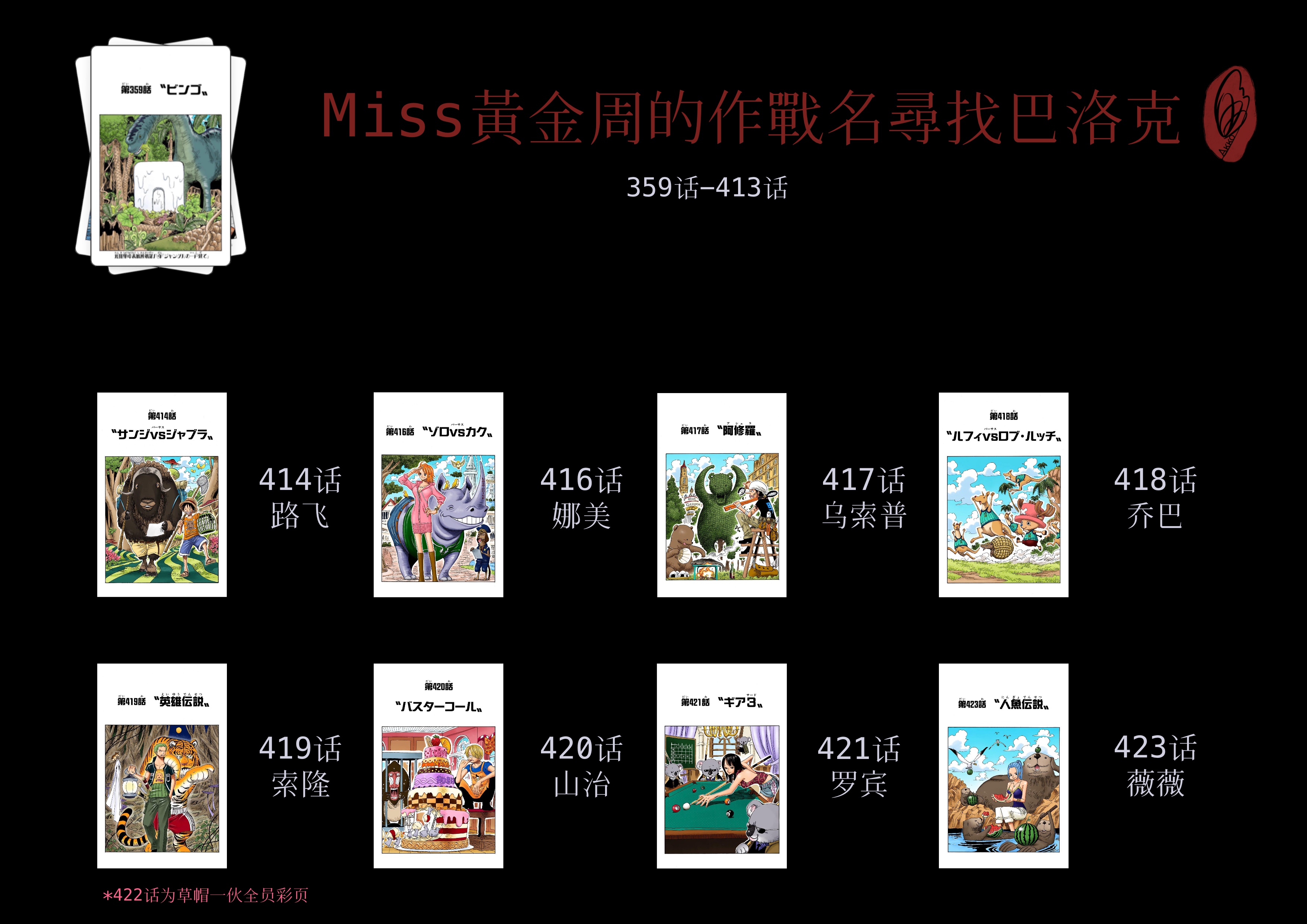 截至本帖编辑时间,ONE PIECE连载至今共有25弹短期扉页连载