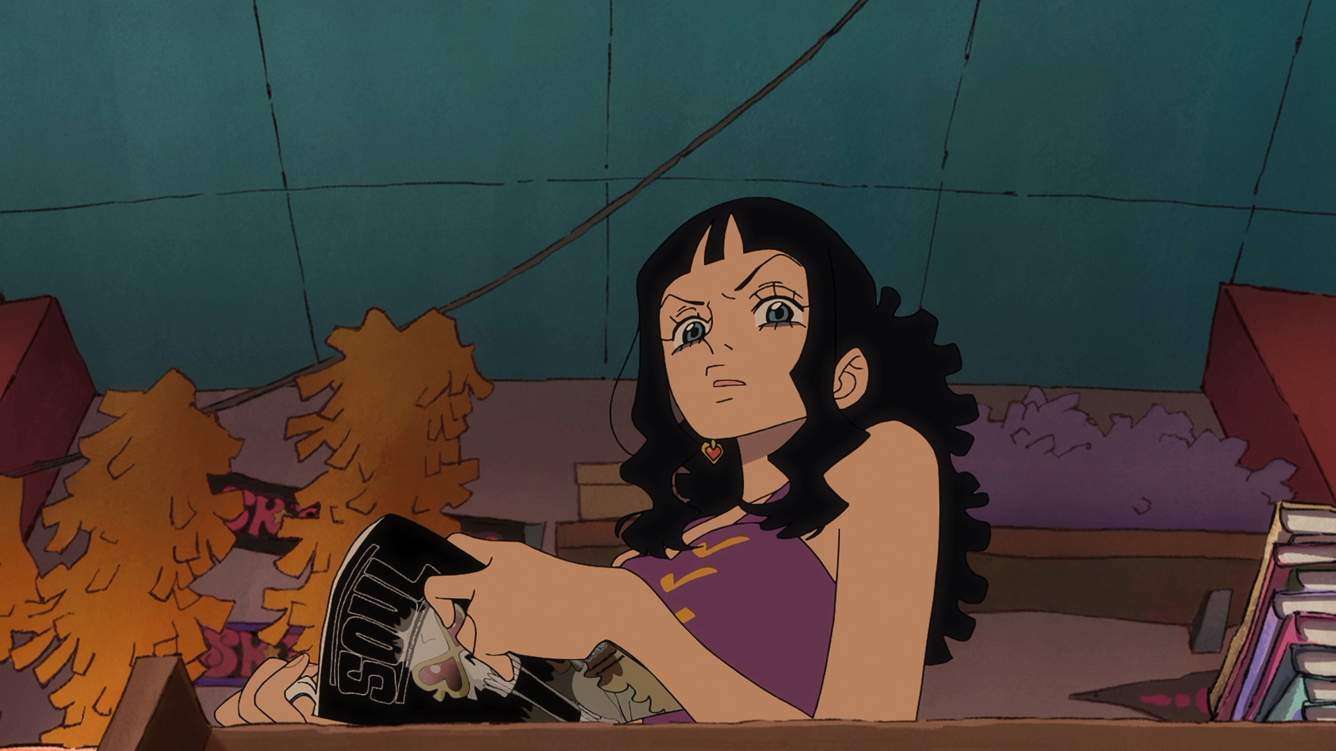 两年后的罗宾正在被CP追捕,她看到了假草帽一伙发布的召集令和布鲁克演唱会的海报。罗宾会来这家充满灵魂之王要素的书店,可能与后者也有关联